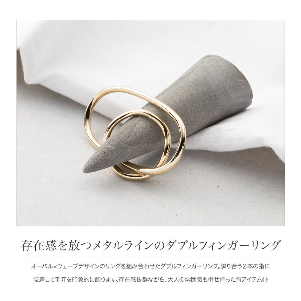 オーバル×ウェーブデザインのリングを組み合わせたダブルフィンガーリング。