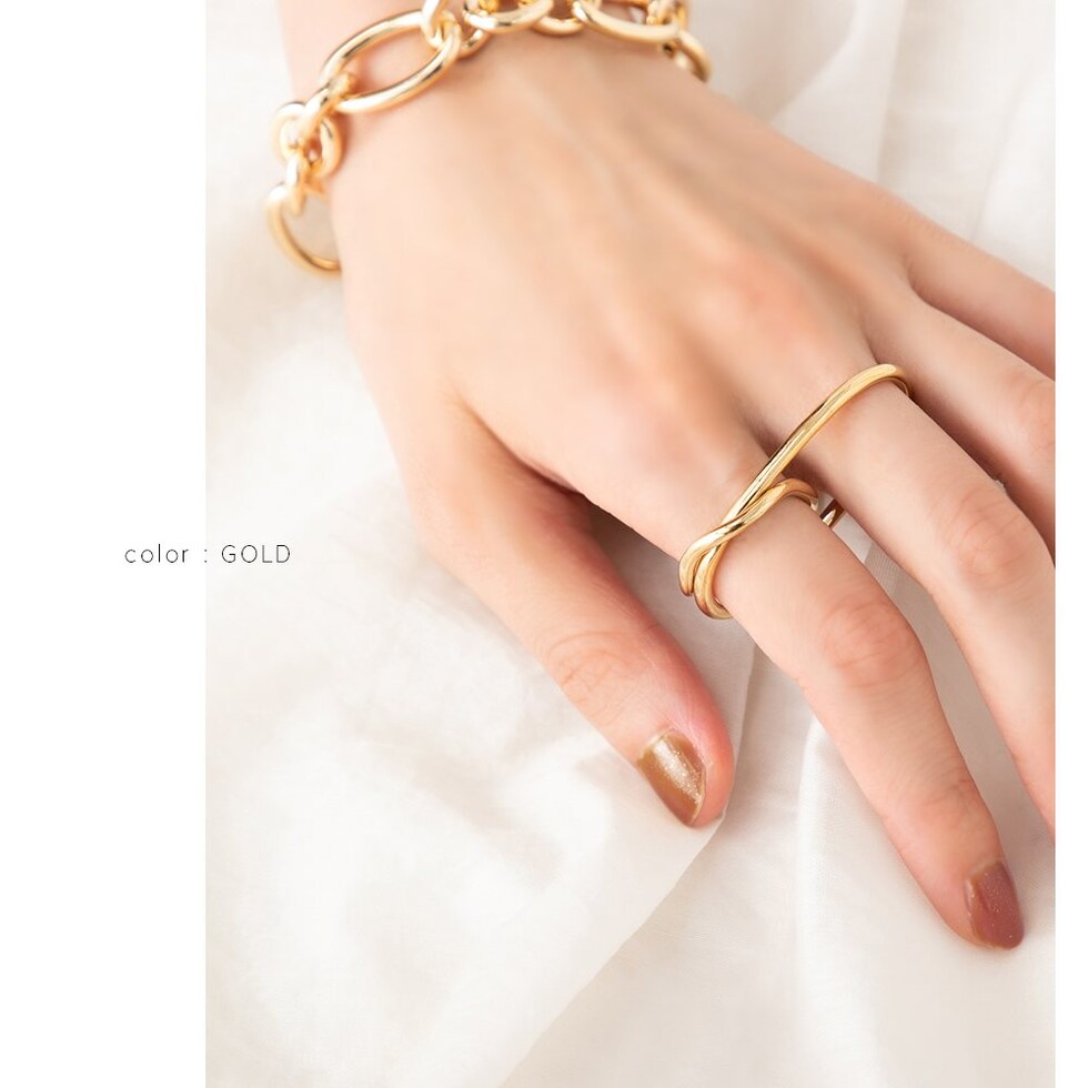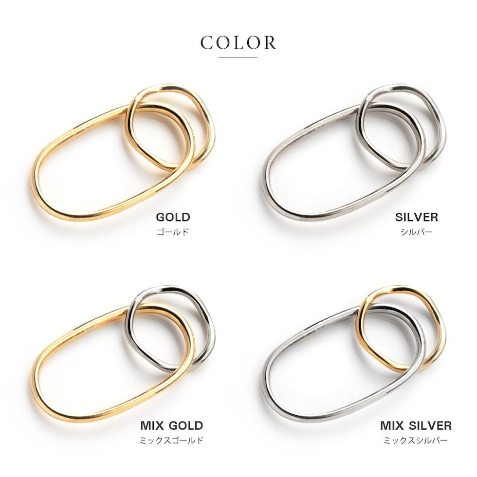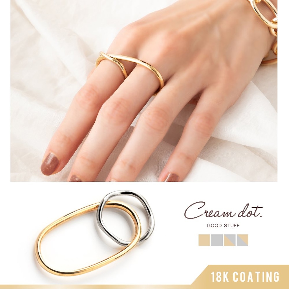 リング 指輪 金属アレルギー ニッケルフリー レディース 重ねづけ フィンガーリング メタル 変形 歪み ウェーブ オーバル cream dot ゆうパケット [ミックスゴールド_ワンサイズ]