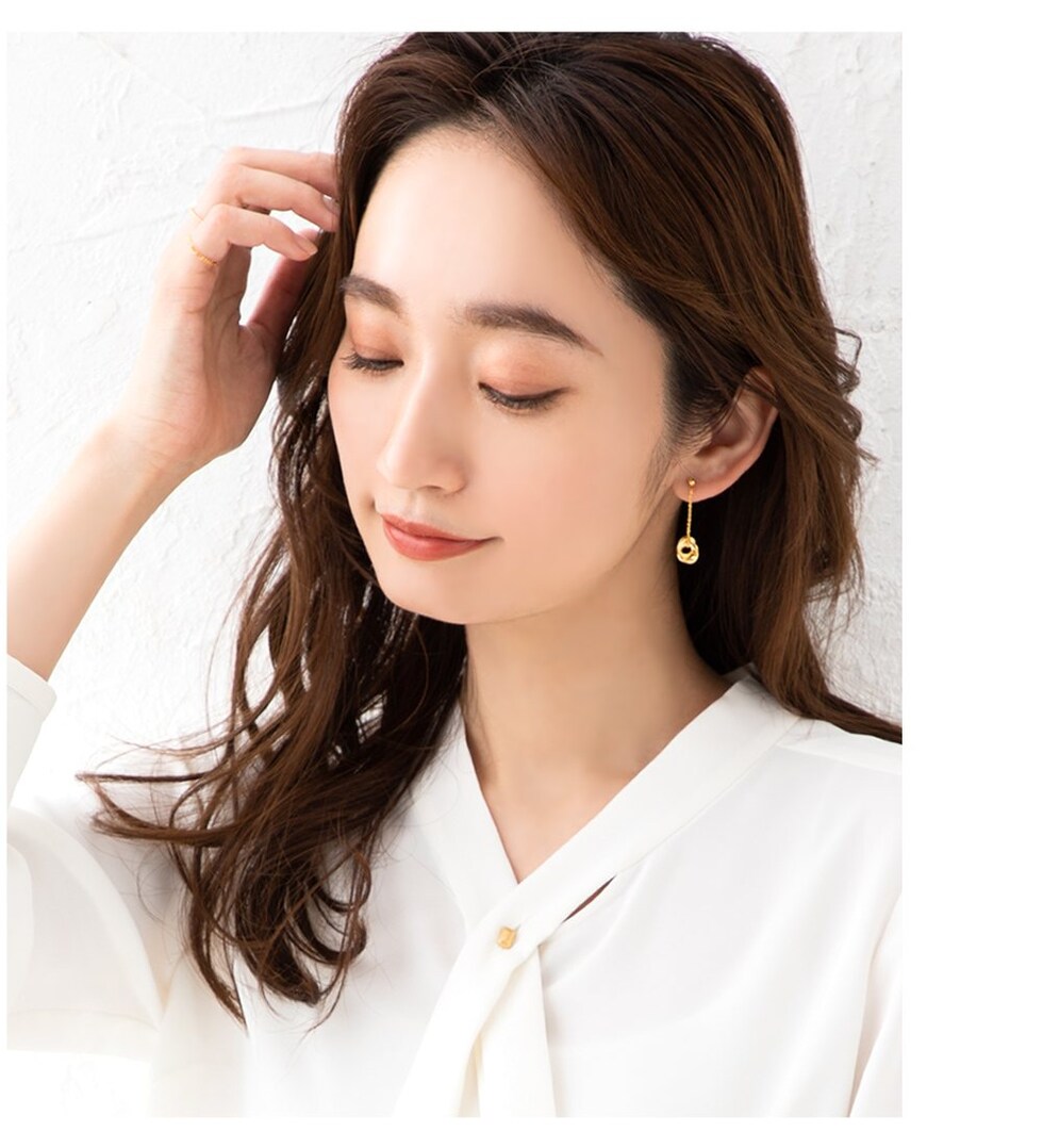 軽やかに揺れる小豆チェーンとシンプルなようで個性的なデザインが、雰囲気あるオトナの耳元に仕上げてくれます。