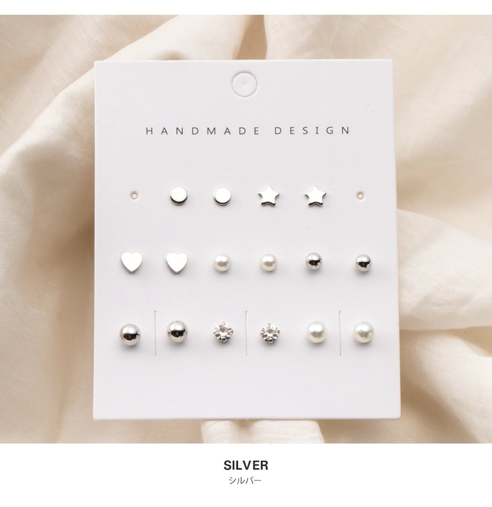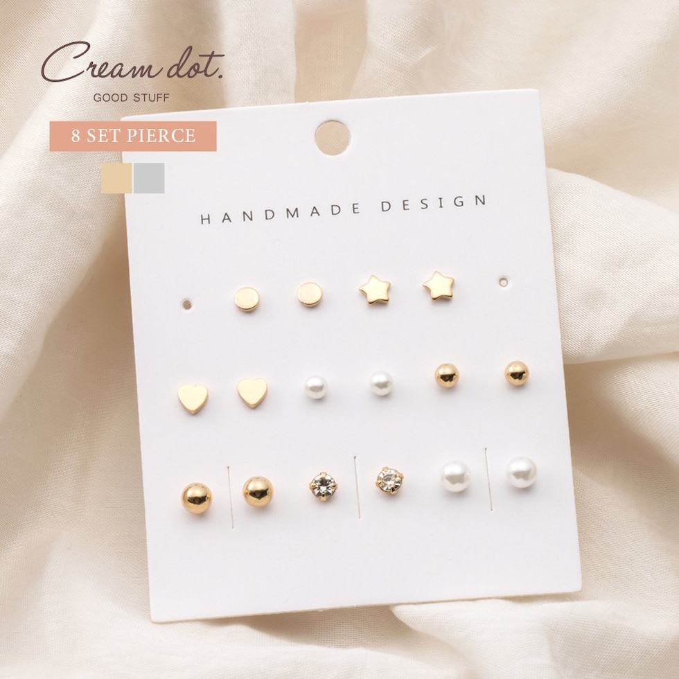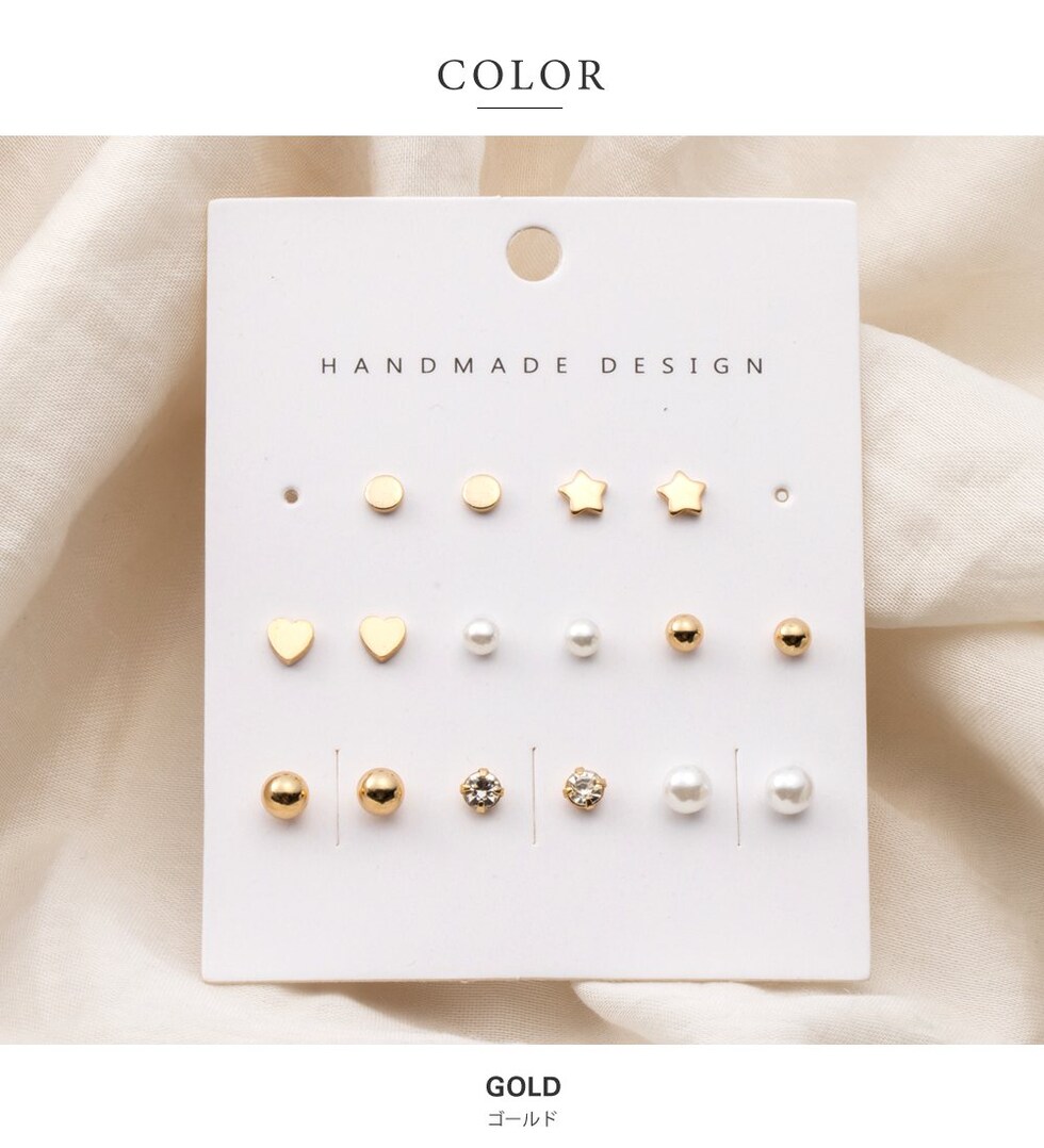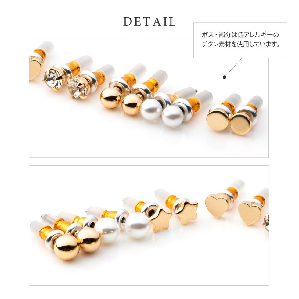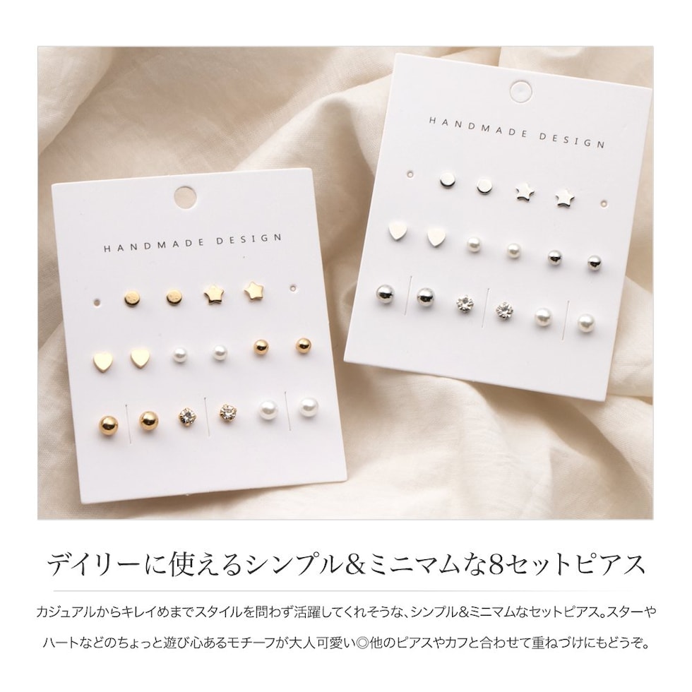 ピアス 金属アレルギー ニッケルフリー レディース 8点セット スタッド ビジュー パール ハート 星 スター メタル ミニマム 小さい cream dot ゆうパケット [ゴールド_アソート]