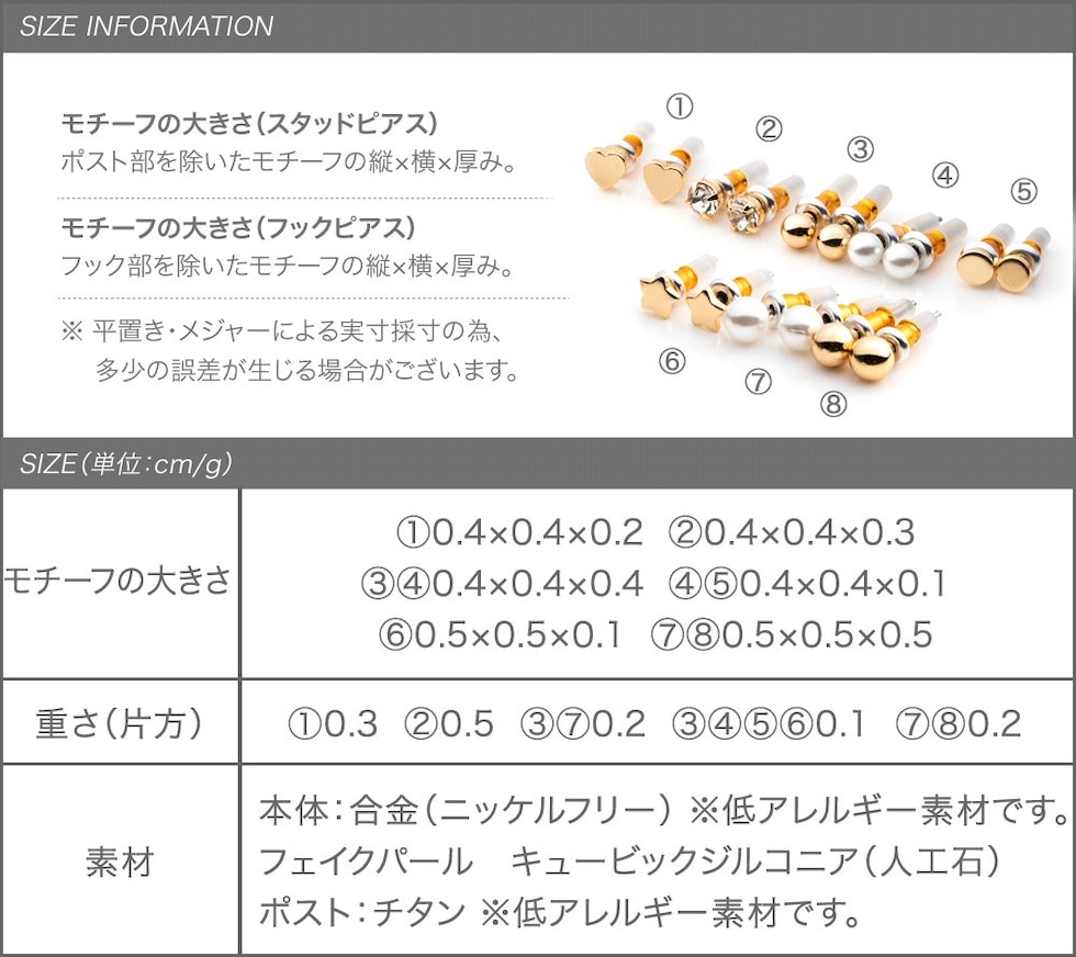 ピアス 金属アレルギー ニッケルフリー レディース 8点セット スタッド ビジュー パール ハート 星 スター メタル ミニマム 小さい cream dot ゆうパケット [ゴールド_アソート]のレビュー