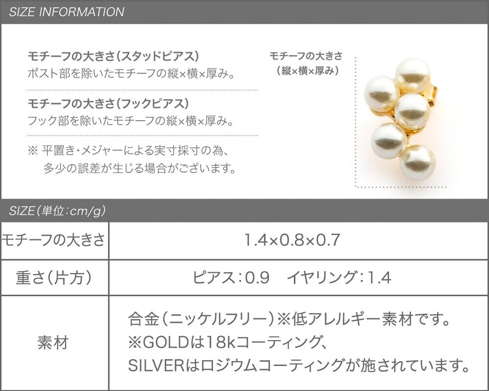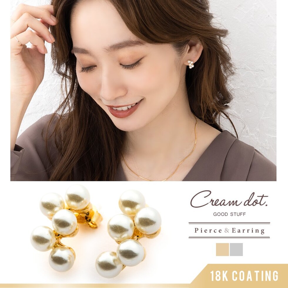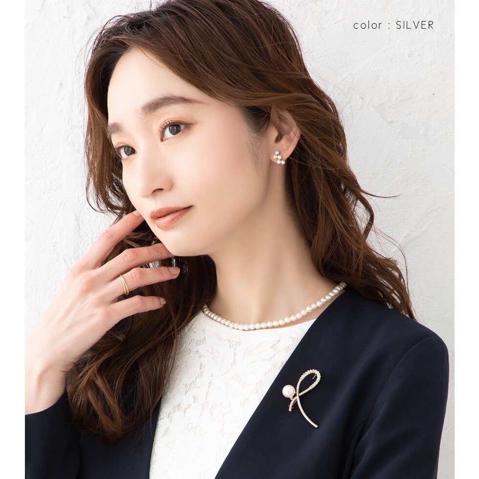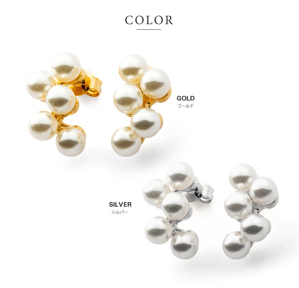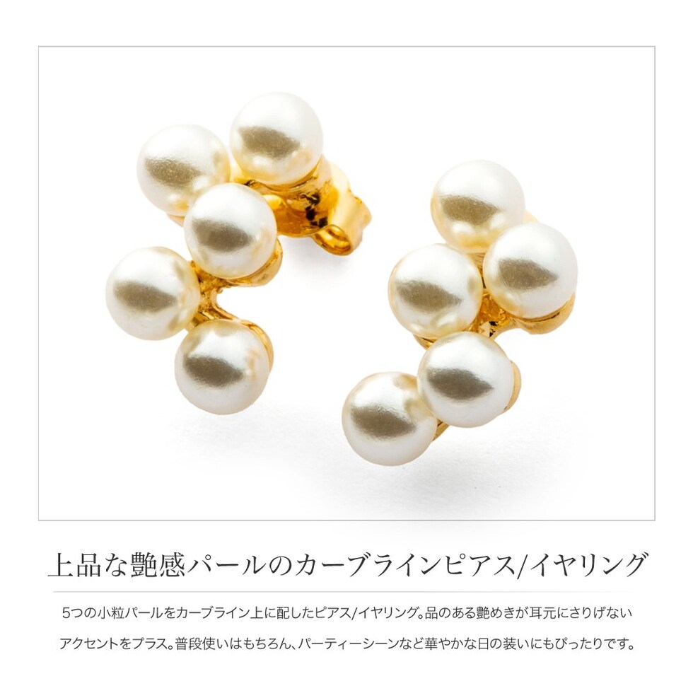 5つの小粒パールをカーブライン上に配したピアス/イヤリング。品のある艶めきが耳元にさりげないアクセントをプラス。普段使いはもちろん、パーティーシーンなど華やかな日の装いにもぴったりです。