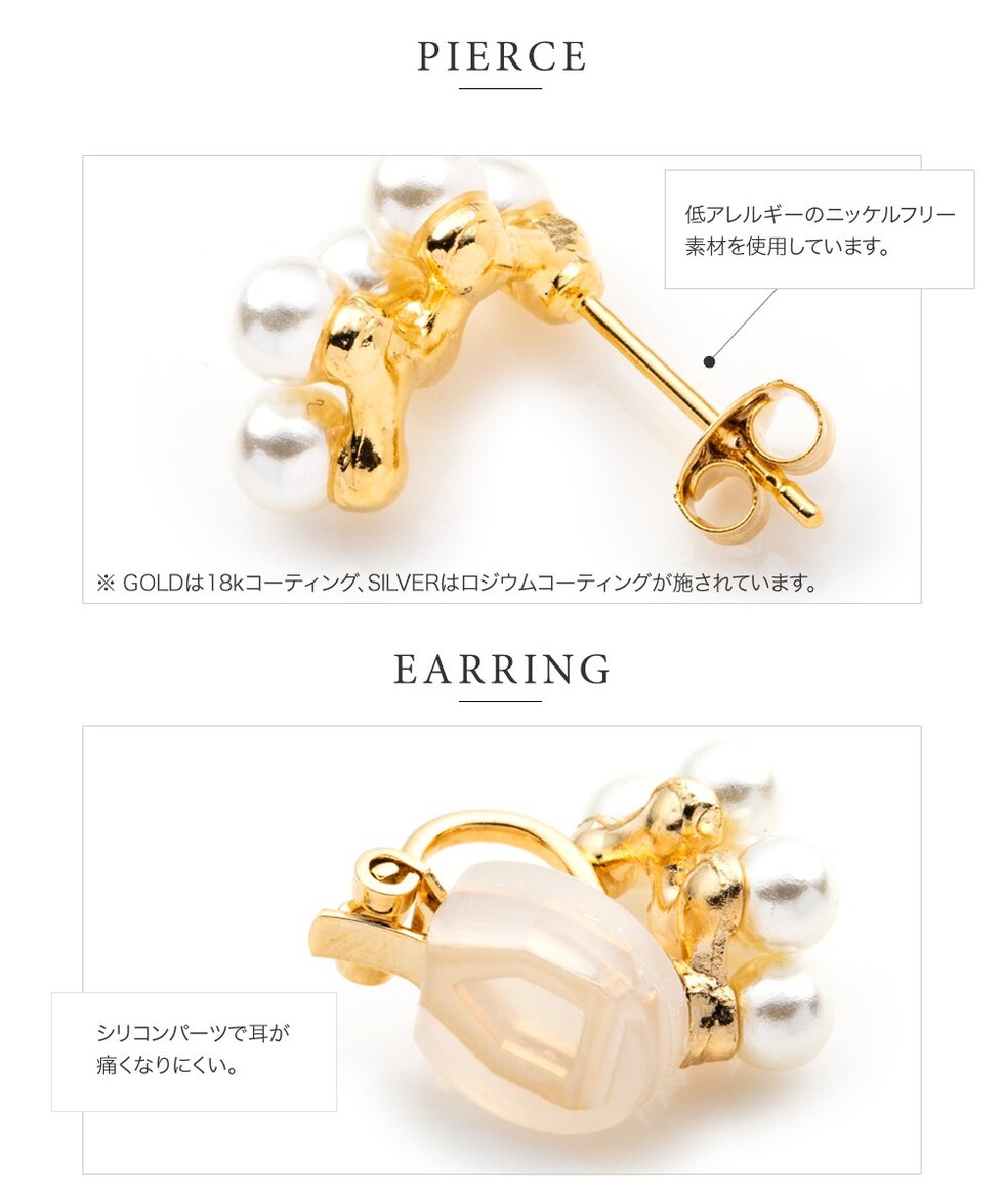 ピアス イヤリング 金属アレルギー ニッケルフリー レディース シリコンカバー クリップ式 パール カーブ cream dot ゆうパケット [シルバー_イヤリング]