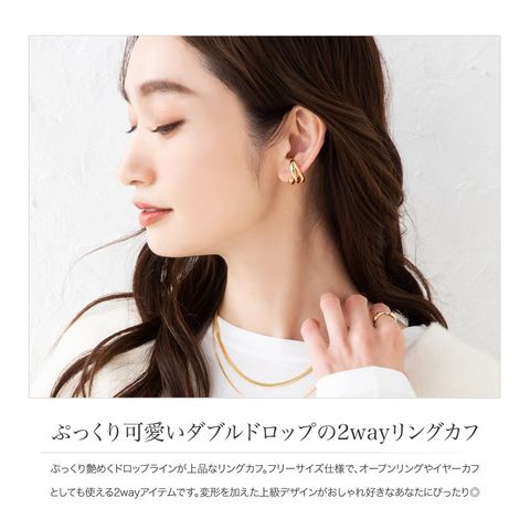 リングだけでなくイヤーカフとしてもアレンジを楽しめる2wayアイテム。カフタイプなので多少のサイズ調節をしてお使いいただけます◎