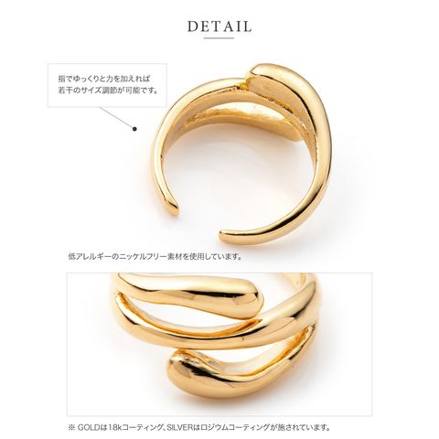 ぷっくり艶めくドロップラインが上品なリングカフ。フリーサイズ仕様で、オープンリングやイヤーカフとしても使える2wayアイテムです。変形を加えた上級デザインがおしゃれ好きなあなたにぴったり◎