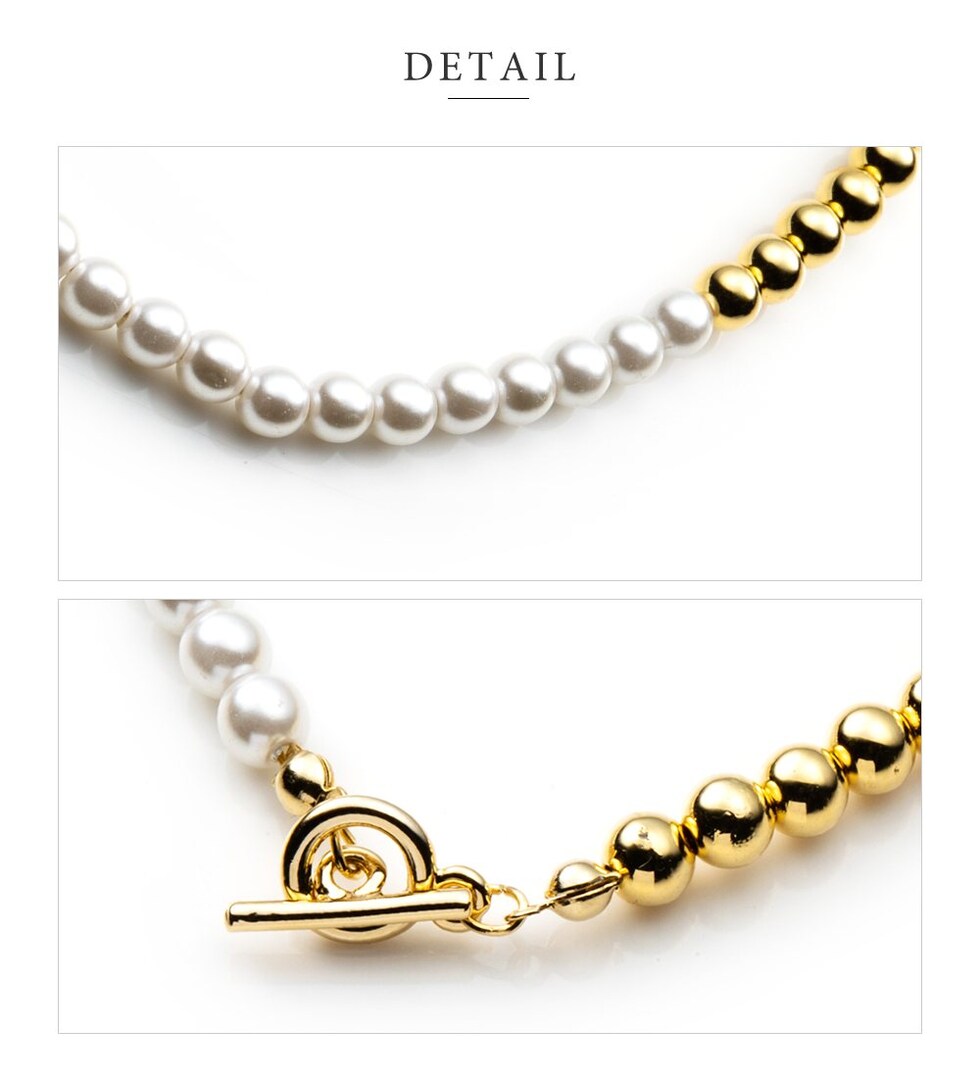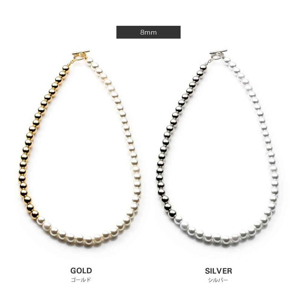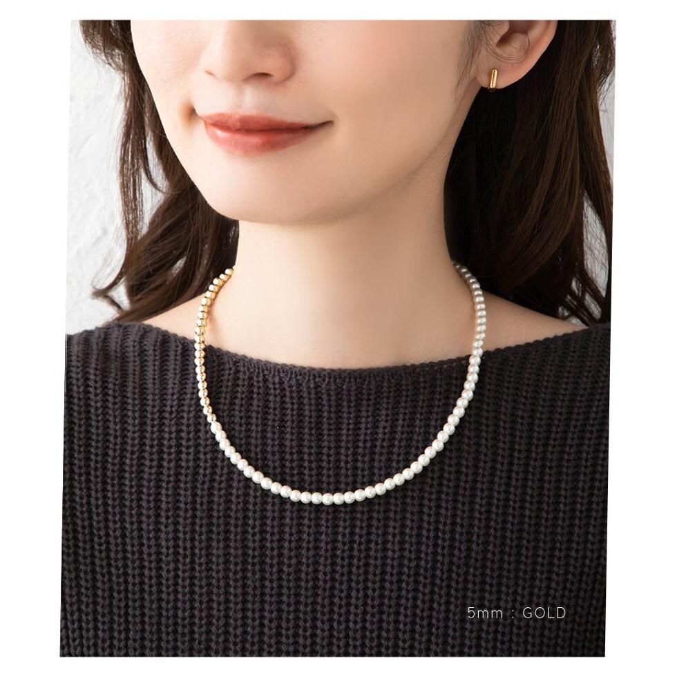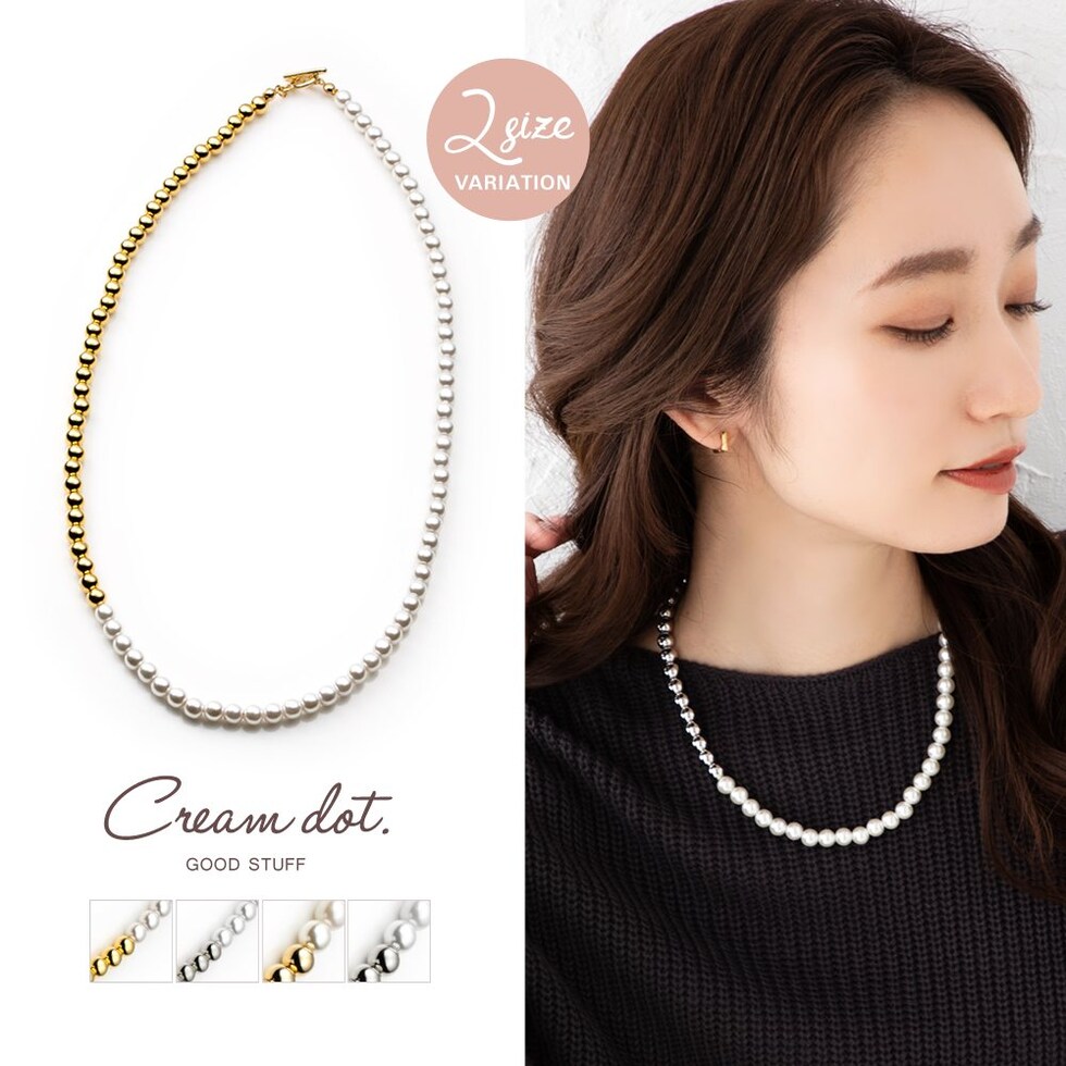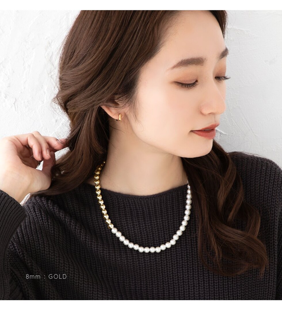 ネックレス レディース 2サイズ ショート マンテル パール メタルボール 切り替え 異素材 5mm 8mm cream dot ゆうパケット [ゴールド_8mm]