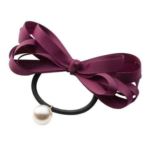 ヘアアクセサリー レディース ヘアゴム グログラン リボン 一粒パール ダスティーピンク グレージュ cream dot ゆうパケット [バーガンディー_ワンサイズ]