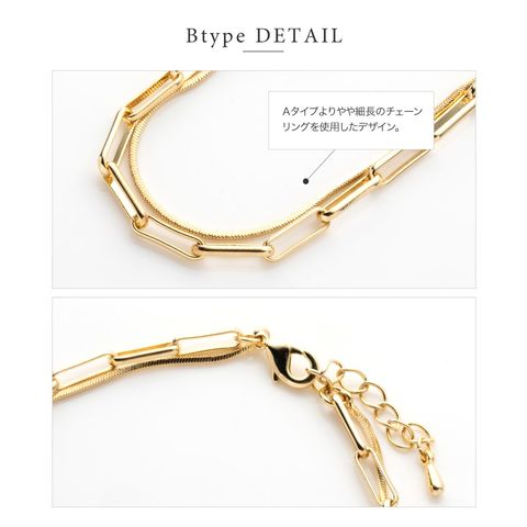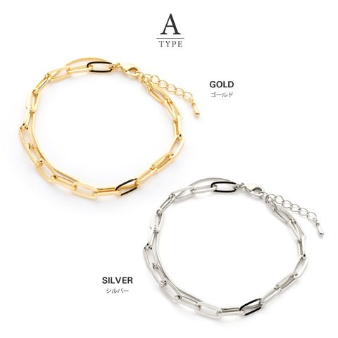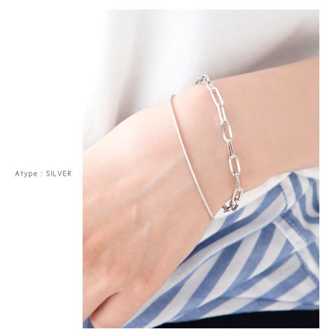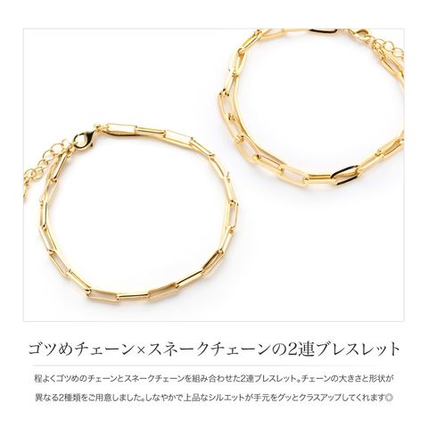 程よくゴツめのチェーンとスネークチェーンを組み合わせた2連ブレスレット。