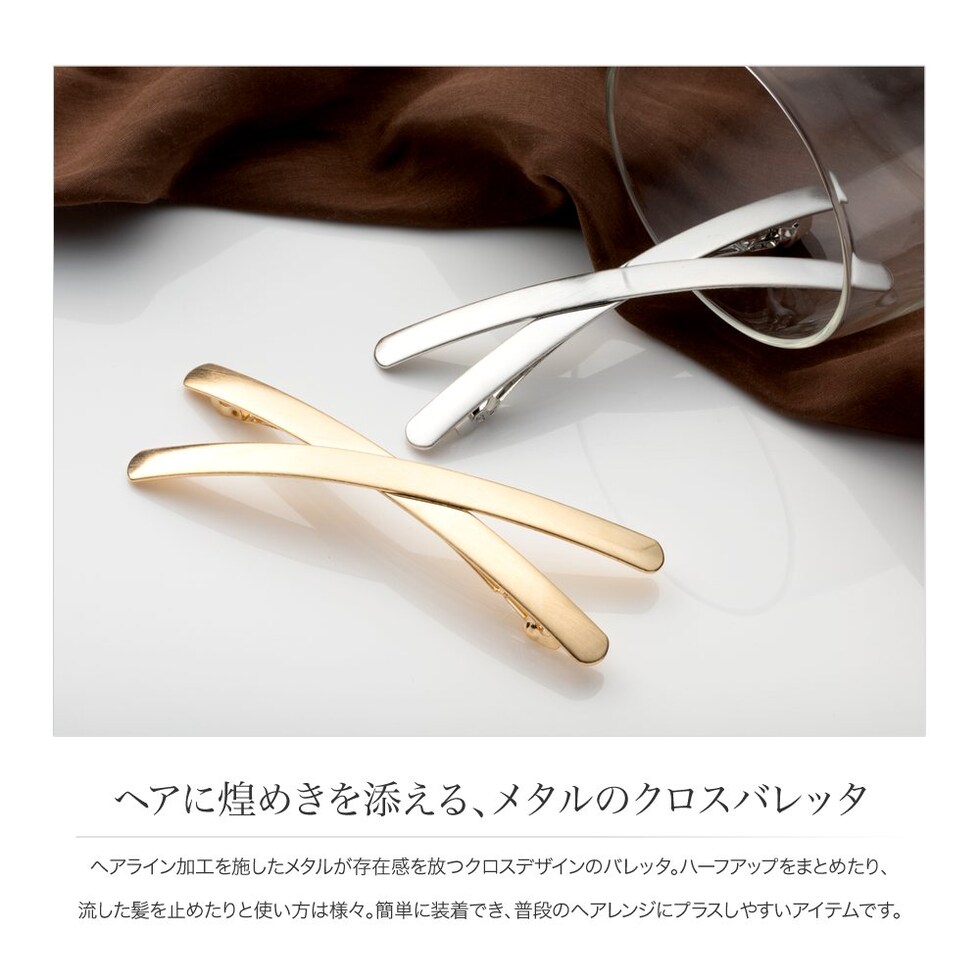 ヘアライン加工を施したメタルが存在感を放つクロスデザインのバレッタ。