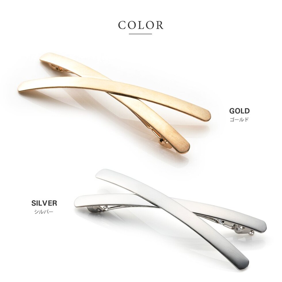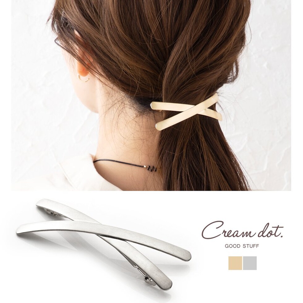 ヘアアクセサリー レディース バレッタ ヘアクリップ 大きめ クロス メタル ヘアライン加工 ハーフアップ cream dot ゆうパケット [シルバー_ワンサイズ]