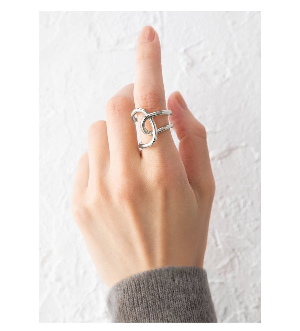 アシンメトリーにクロスしたデザインが目を惹くリング。