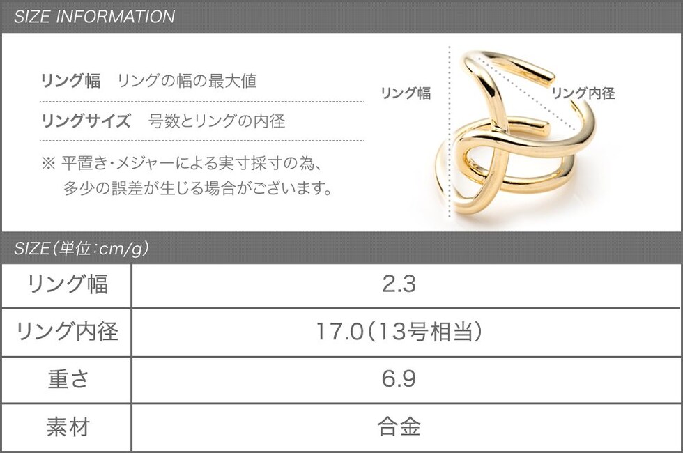 リング 指輪 レディース オーバークロス アシンメトリー 曲線 交差 存在感 cream dot ゆうパケット [ゴールド_13号]