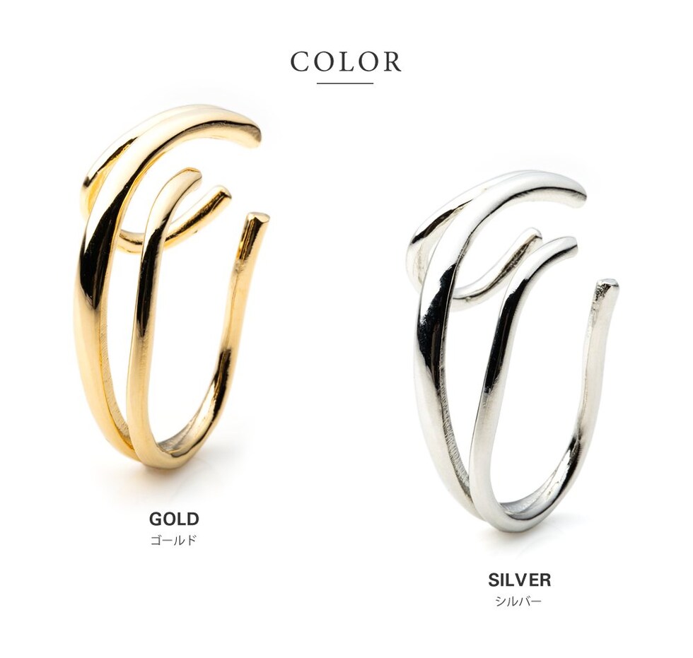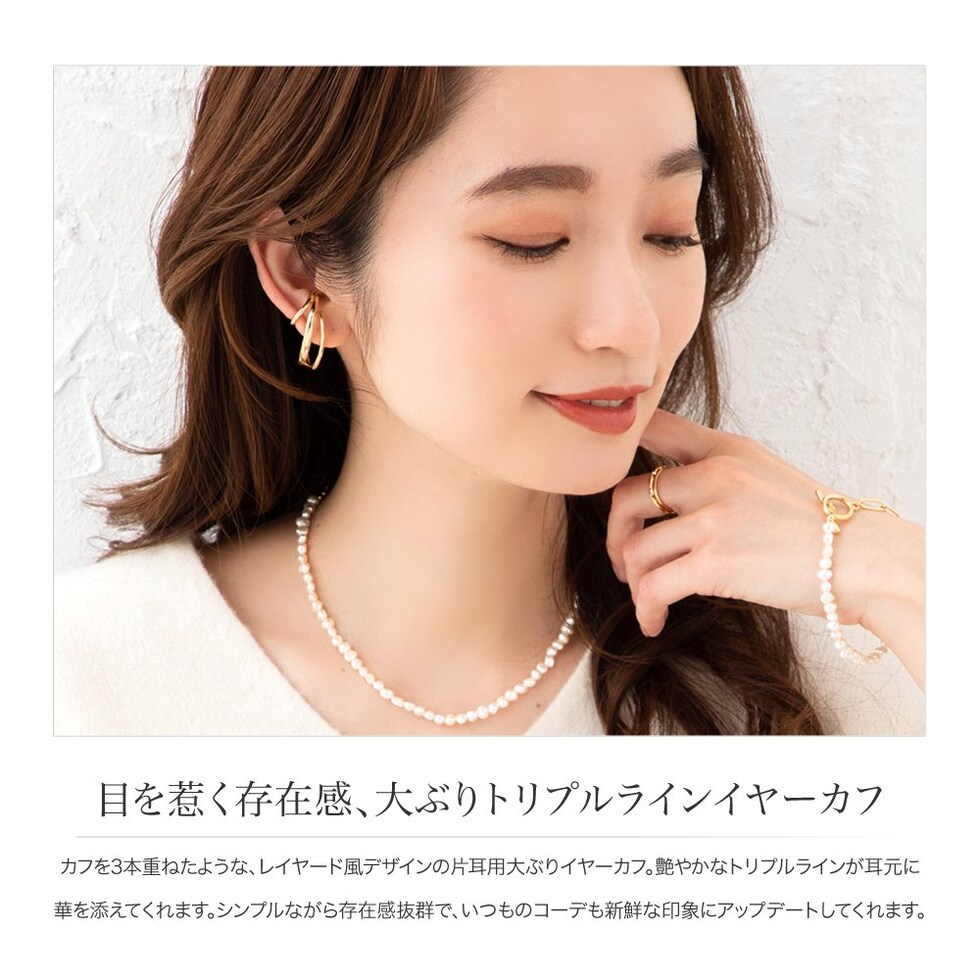 カフを3本重ねたような、レイヤード風デザインの片耳用大ぶりイヤーカフ。