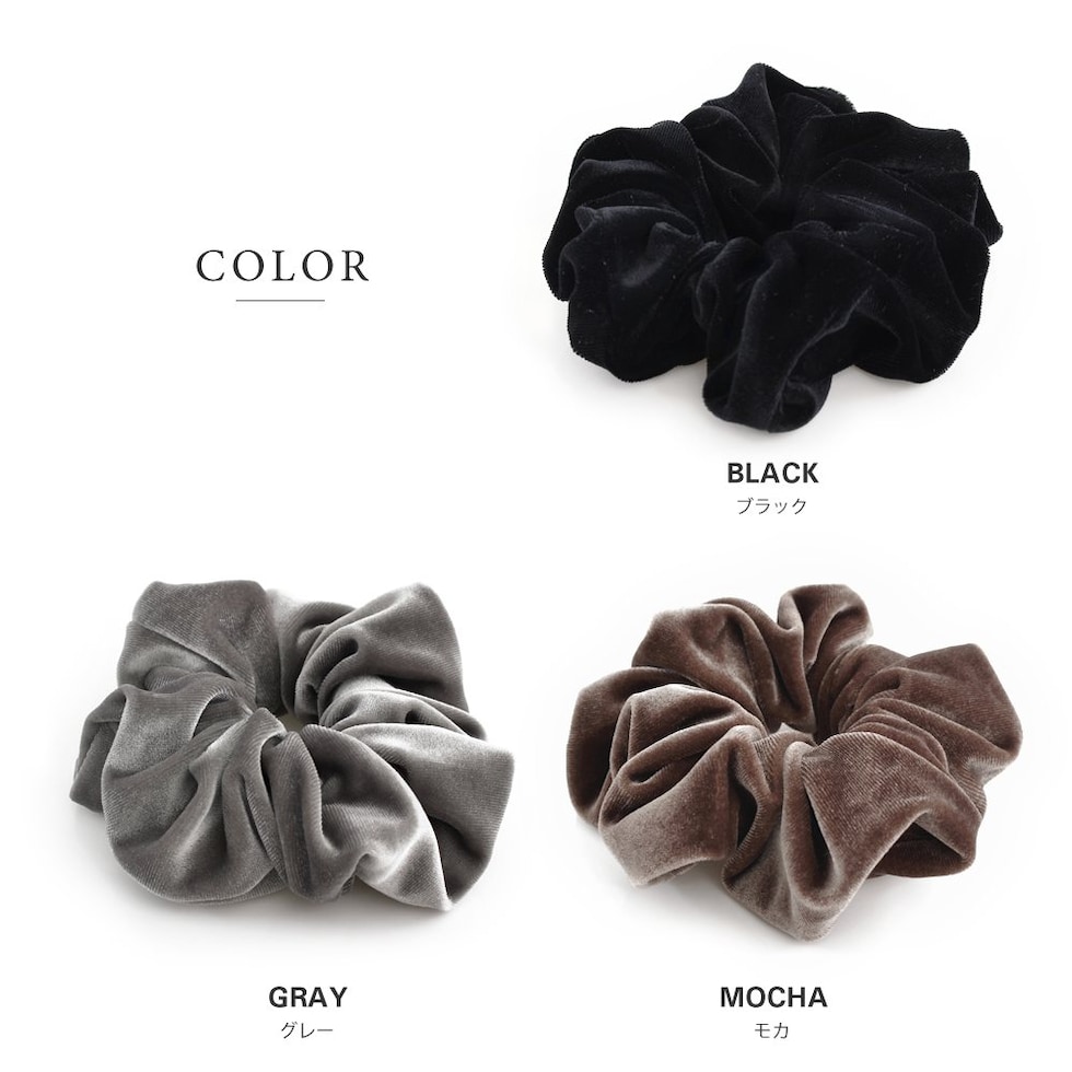 ヘアアクセサリー レディース シュシュ ヘアゴム ベロア ベルベット リボン ボリューム 大きめ 光沢 髪留め まとめ髪 軽い チャコール cream dot ゆうパケット [ブラック_ワンサイズ]