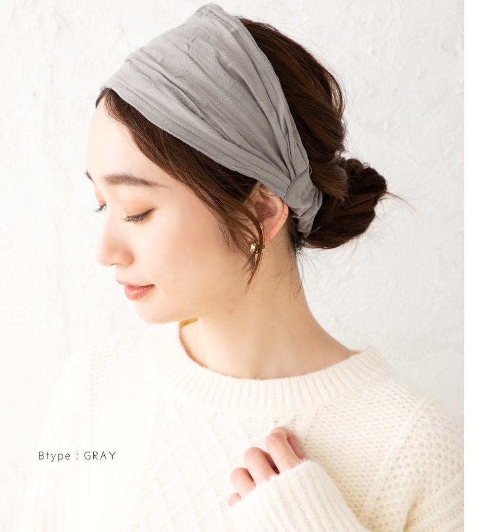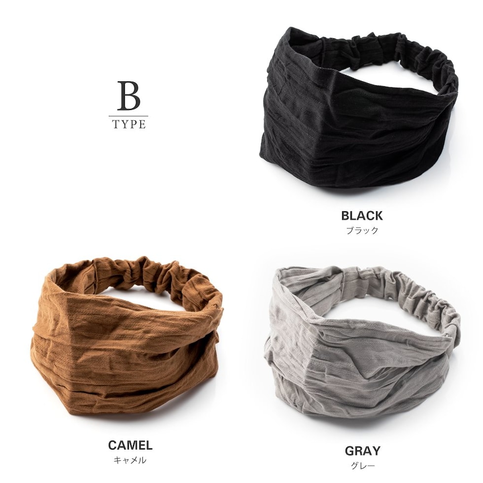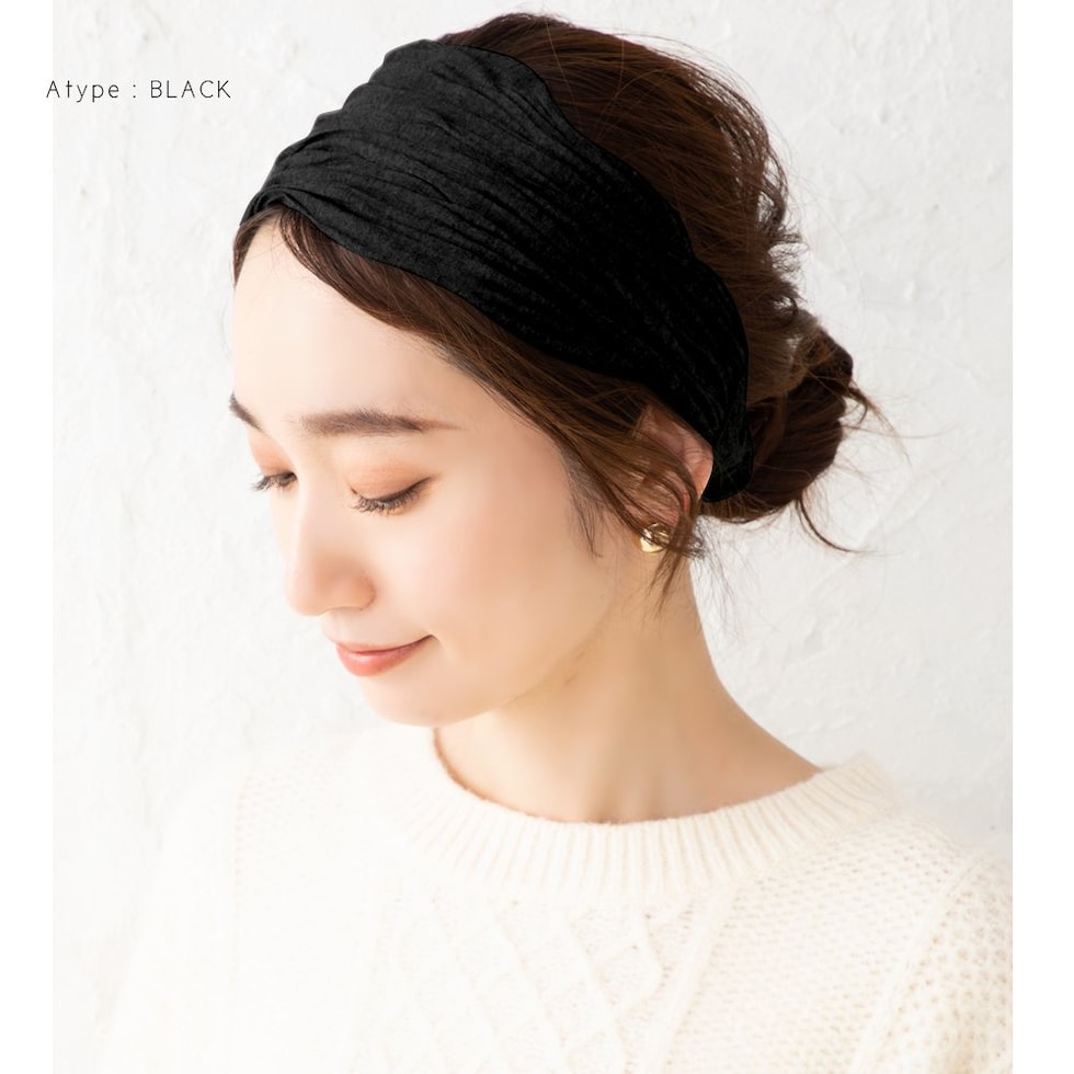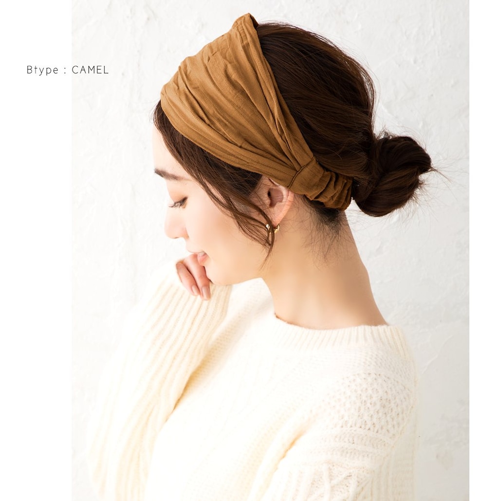 異なる2タイプの生地から選べるワイドヘアターバン。くしゅくしゅとした肌触りの良い生地が大人のリラクシーなスタイルにぴったり◎シックなカラーリングで身に着けやすいアイテムです。
