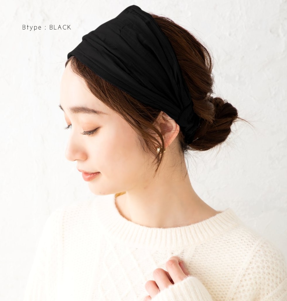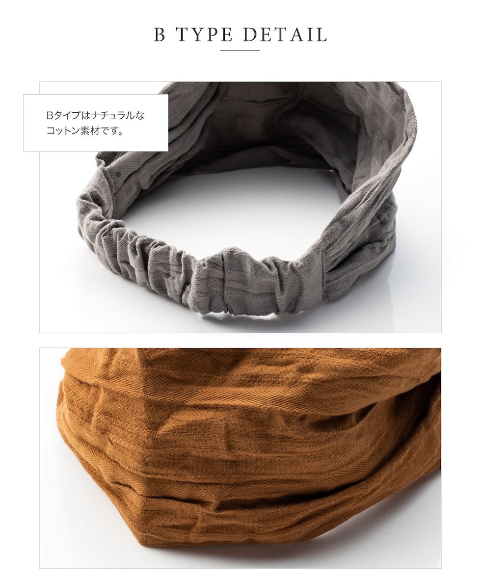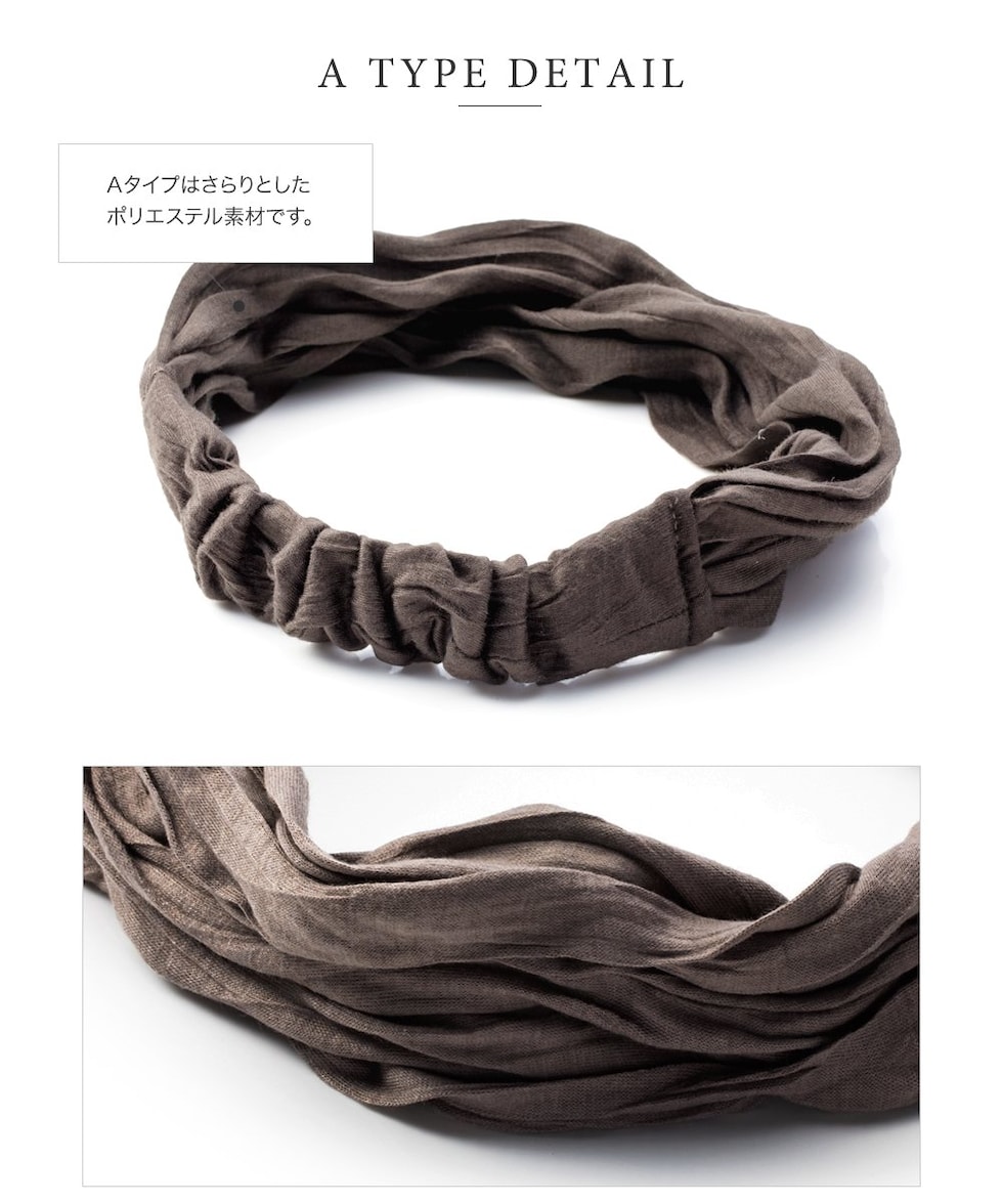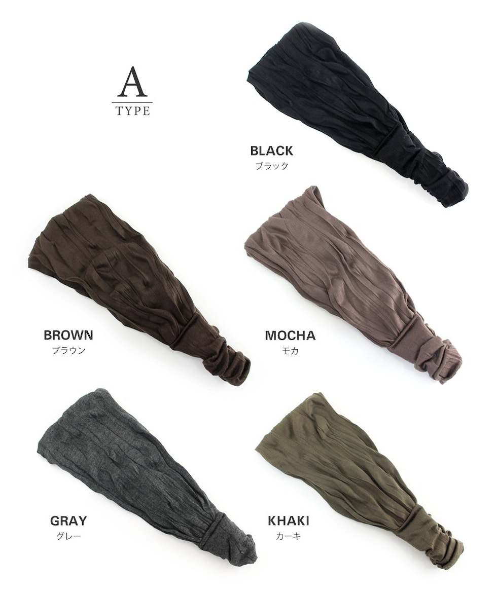 異なる2タイプの生地から選べるワイドヘアターバン。くしゅくしゅとした肌触りの良い生地が大人のリラクシーなスタイルにぴったり◎シックなカラーリングで身に着けやすいアイテムです。