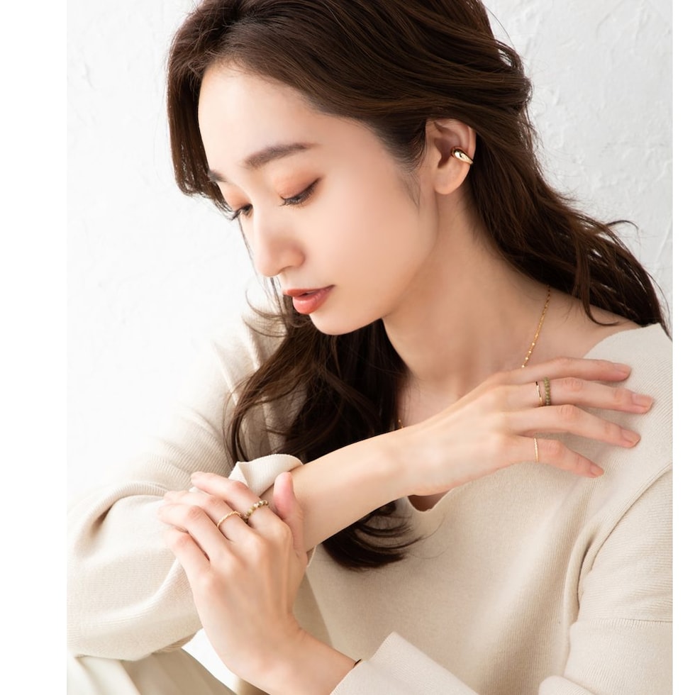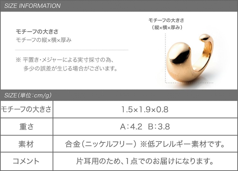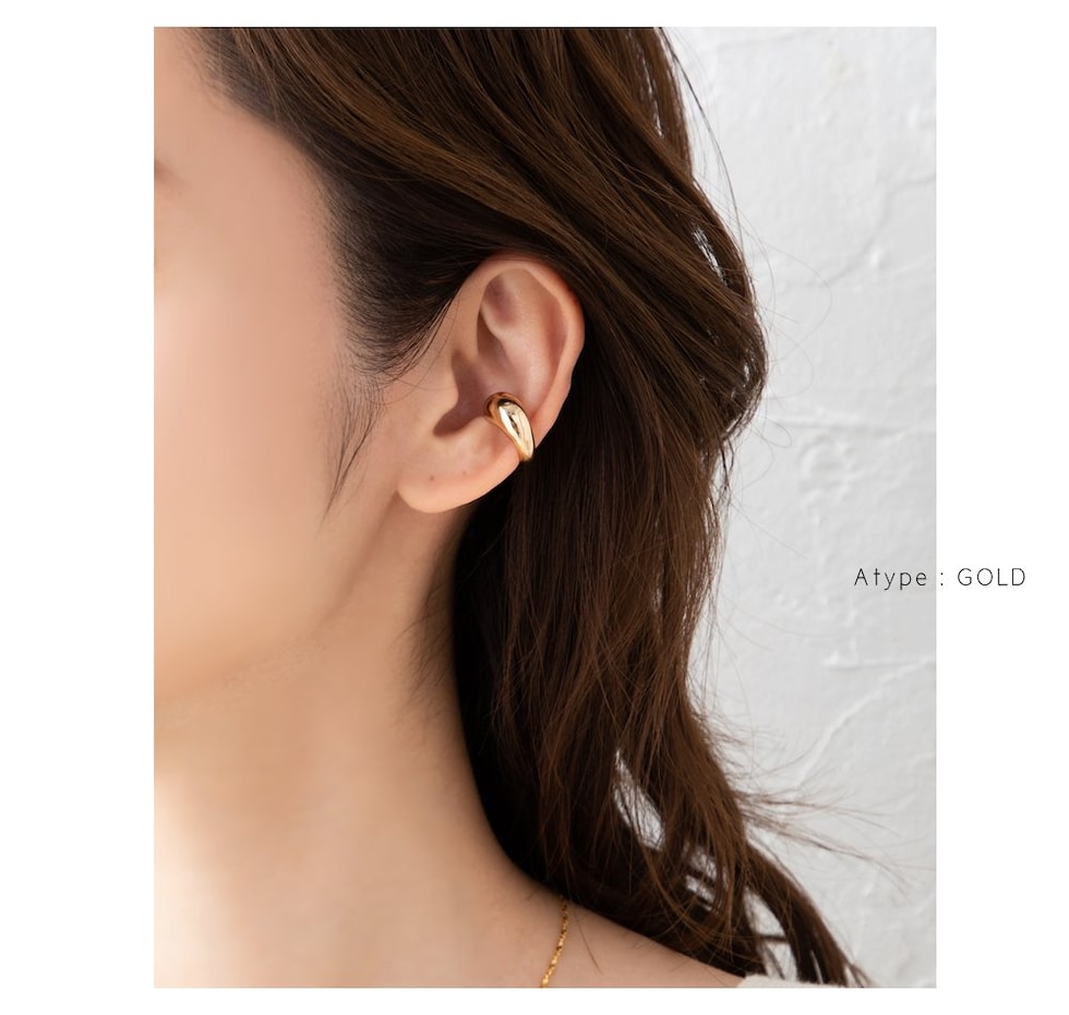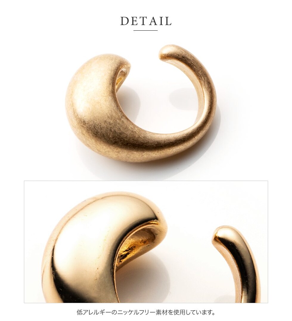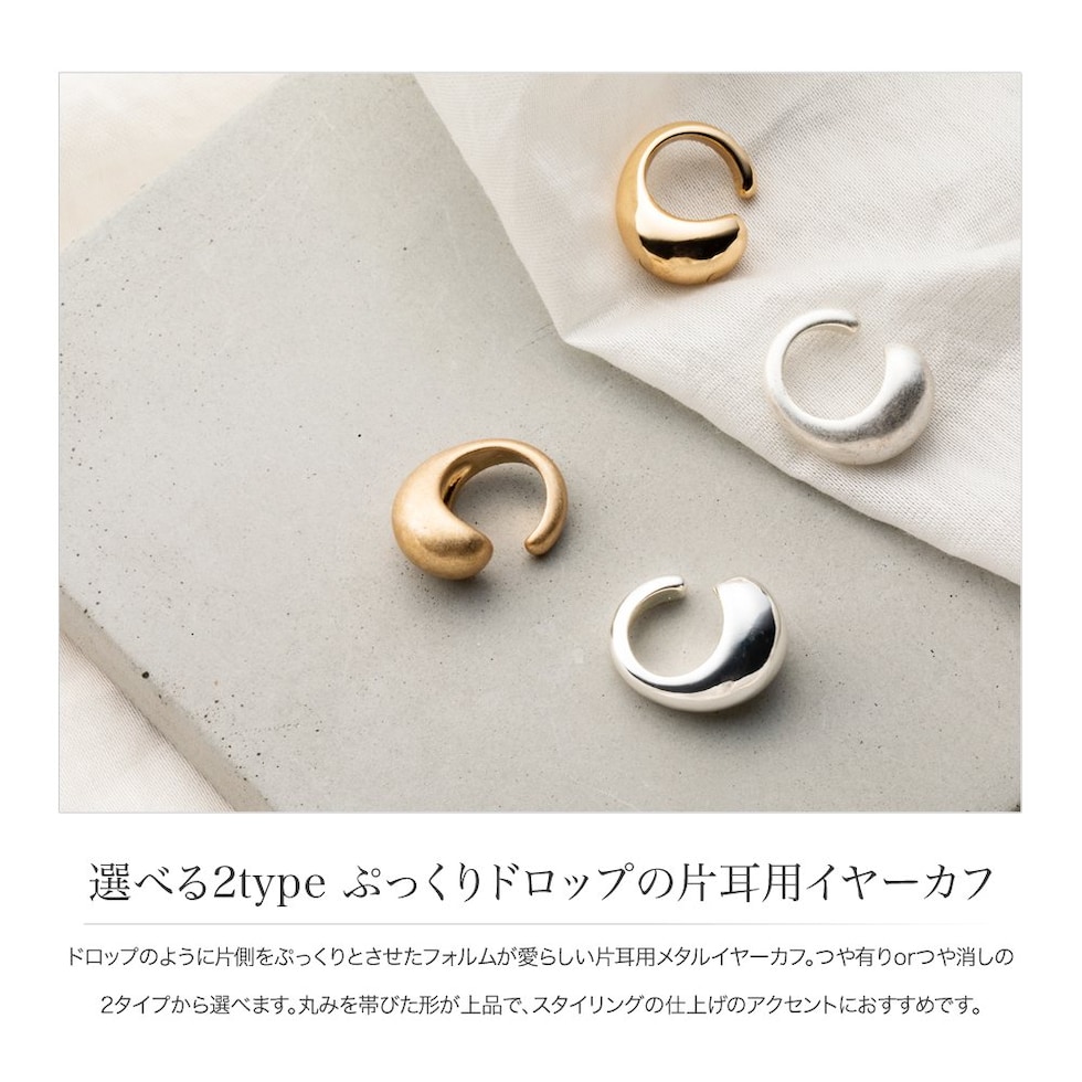 ドロップのように片側をぷっくりとさせたフォルムが愛らしい片耳用メタルイヤーカフ。