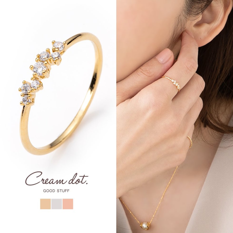 リング 指輪 レディース キュービックジルコニア ビジュー cream dot ゆうパケット [ピンクゴールド_5号]