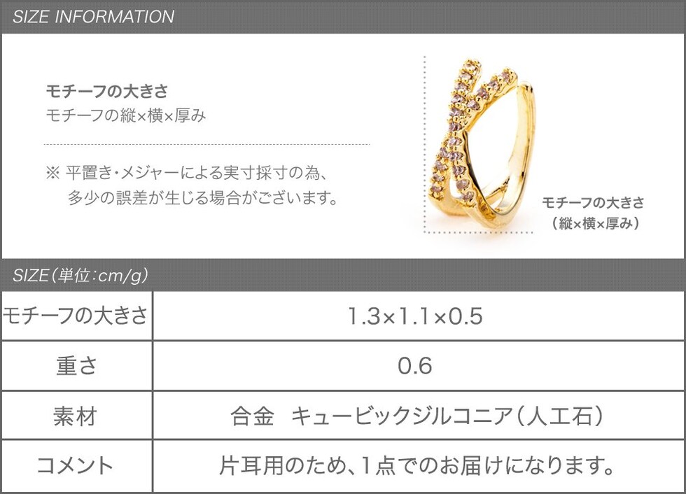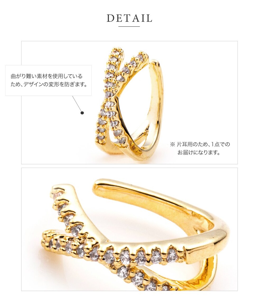 イヤーカフ レディース イヤーカフ イヤカフ 片耳用 メタル キュービックジルコニア ビジュー クロス cream dot ゆうパケット [ゴールド_ワンサイズ]