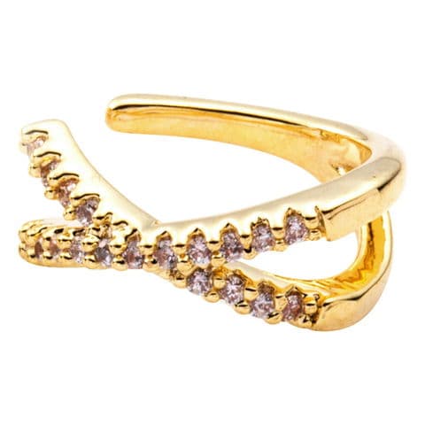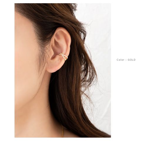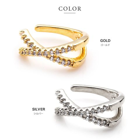 2つのビジューラインがクロスした片耳用イヤーカフ。