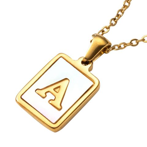 ネックレス ステンレス 金属アレルギー サージカルステンレス レディース つけっぱなし ショート シェルプレート スクエア ラウンド チェーン イニシャル アルファベット cream dot ゆうパケット [Aタイプ_A]