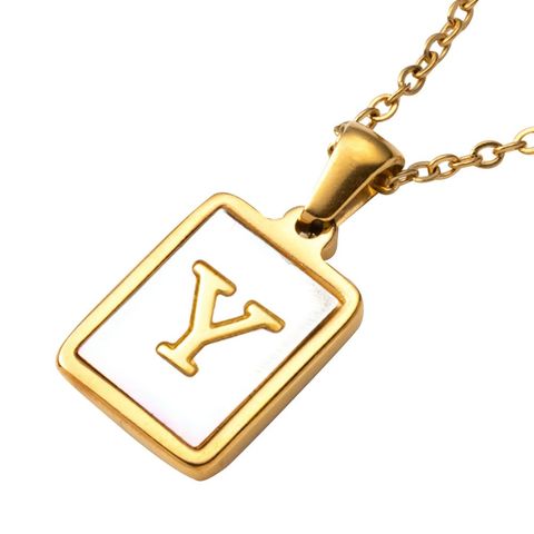 ネックレス ステンレス 金属アレルギー サージカルステンレス レディース つけっぱなし ショート シェルプレート スクエア ラウンド チェーン イニシャル アルファベット cream dot ゆうパケット [Aタイプ_Y]