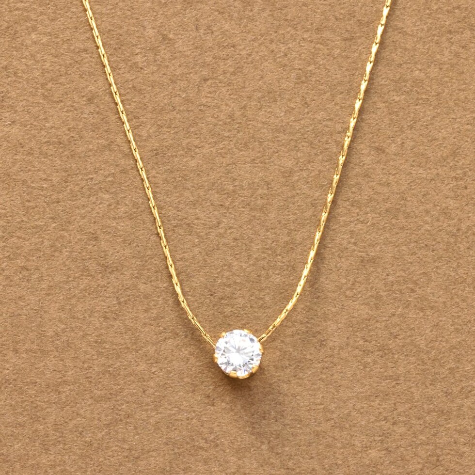 ネックレス ステンレス 金属アレルギー サージカルステンレス レディース つけっぱなし ショート チェーン キュービックジルコニア 一粒ビジュー 多面カット cream dot ゆうパケット [ピンクゴールド_ワンサイズ]