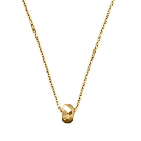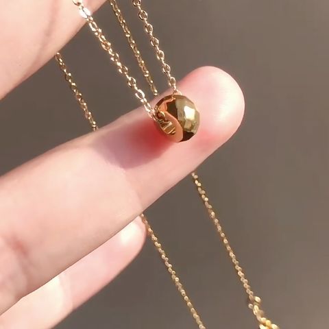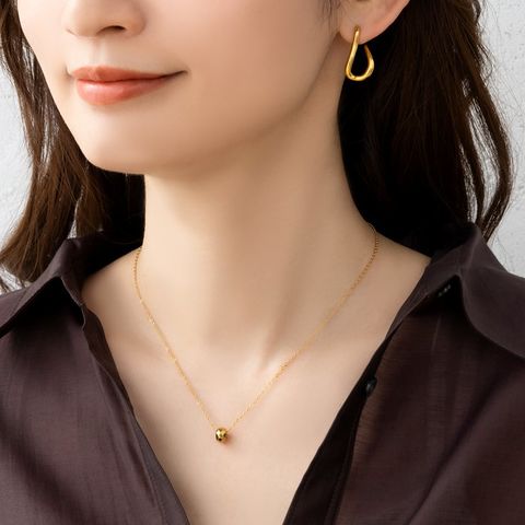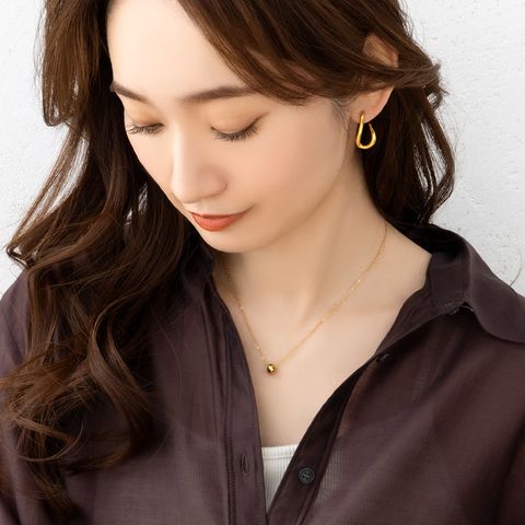 光を受けてキラキラと煌くフラットカットのリングネックレス。存在感がありつつ上品に身につけられるサイズ感でデコルテのアクセントにぴったり。錆びにくいステンレス製でデイリーに活躍しそう。