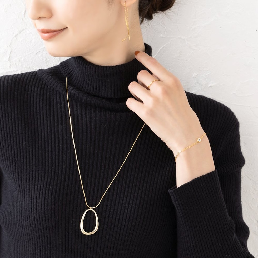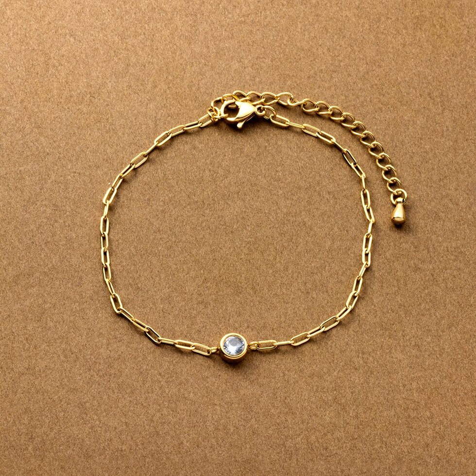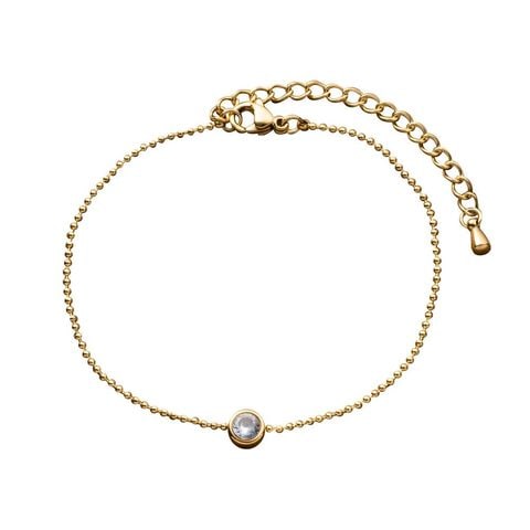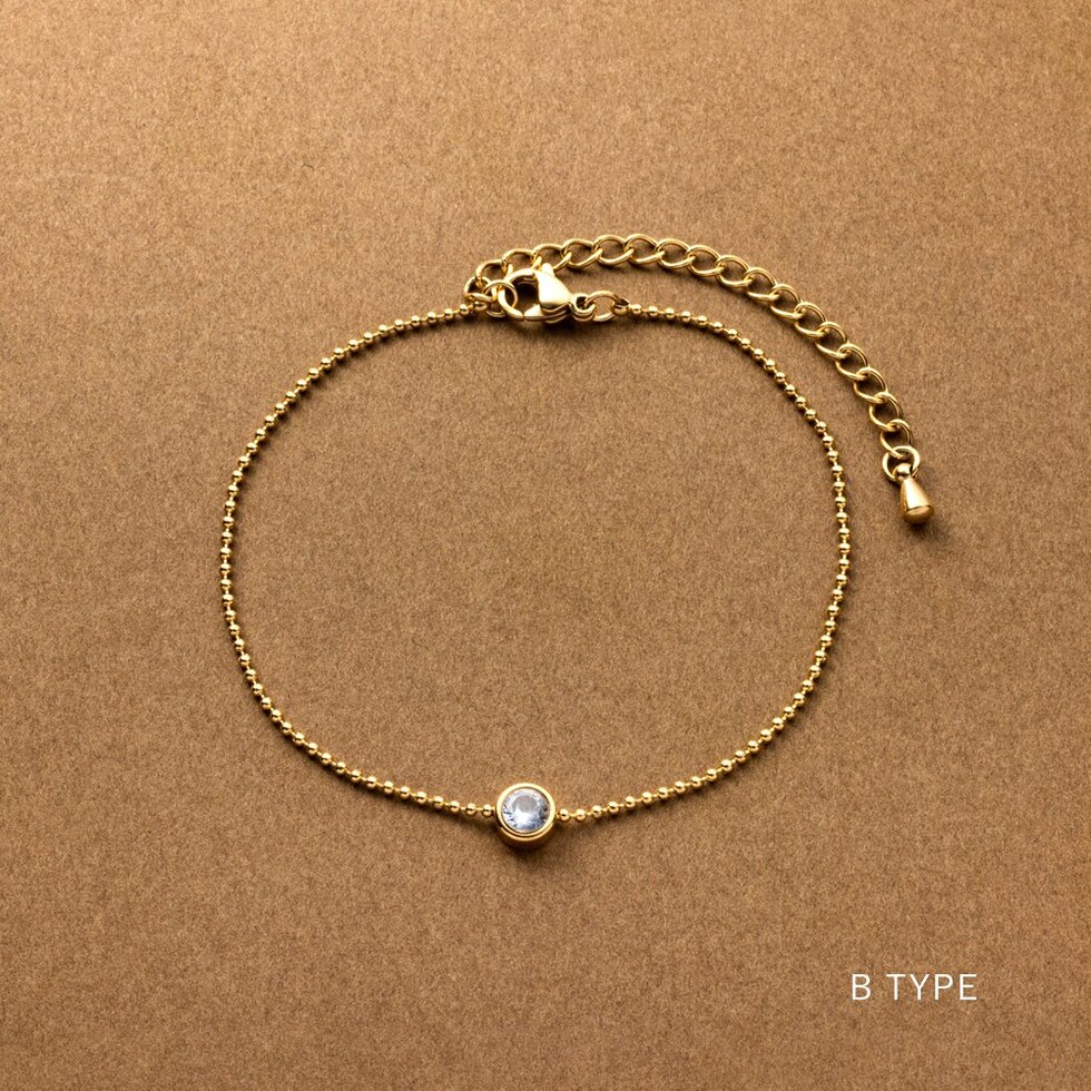 一粒ビジューのアクセントが上品な手元に仕上がるステンレス製ブレスレット。華奢なチェーンが洗練された印象を演出してくれます。錆びにくいステンレス製でデイリーに活躍するひと品。