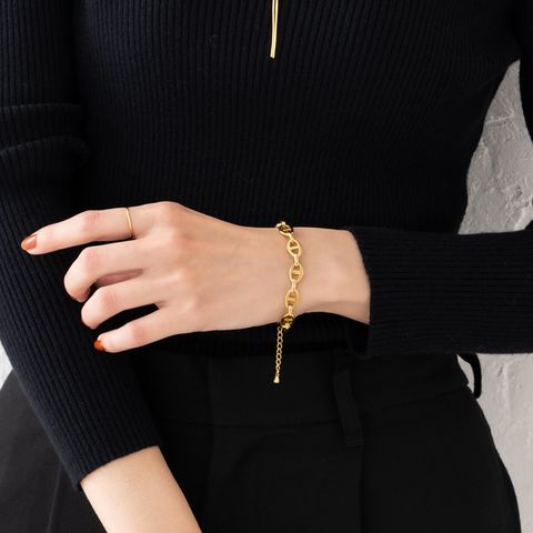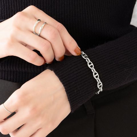 モダンな存在感をプラスするマリンチェーンのブレスレット。絶妙なボリューム感が他とはひと味違った洗練された手元を演出してくれます。錆びにくいステンレス製でデイリーに活躍するひと品。