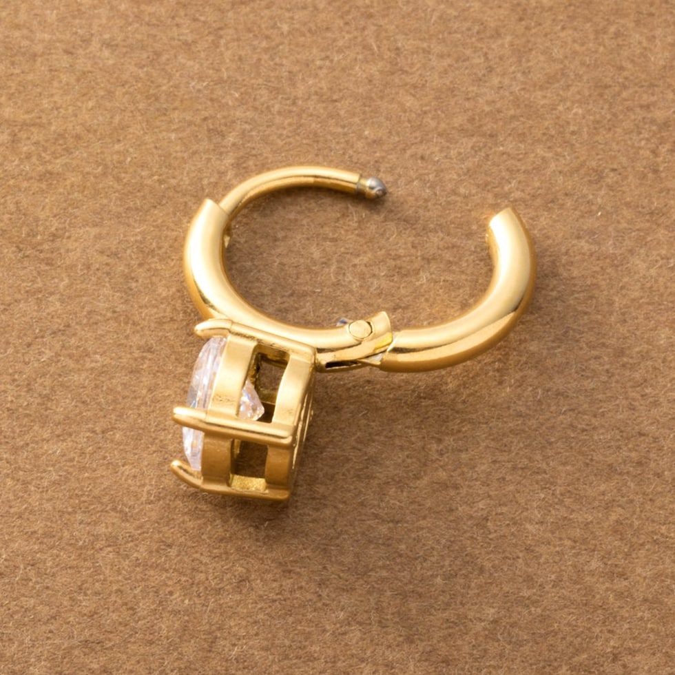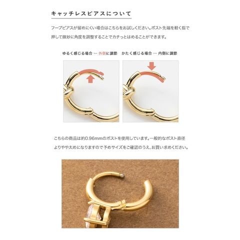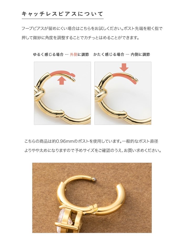 ピアス ステンレス 金属アレルギー サージカルステンレス レディース フープ つけっぱなし 中折れ キャッチレス 開閉式 キュービックジルコニア 一粒ビジュー cream dot ゆうパケット [ゴールド_ピアス]