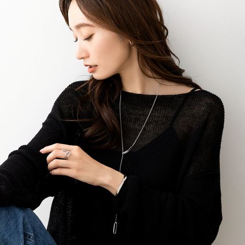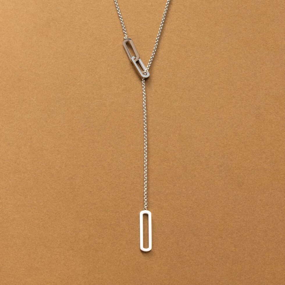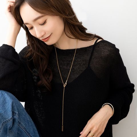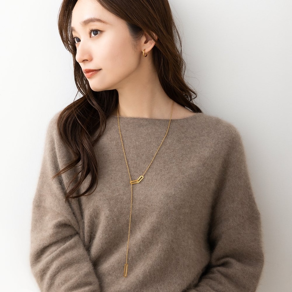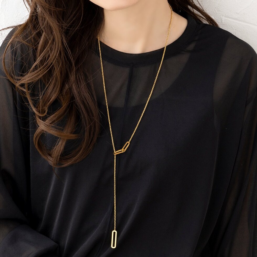 シンプルで洗練されたデザインが大人っぽいY字ラリエットのロングネックレス。程よい存在感で品よく身につけられるデザイン◎錆びにくく傷に強いステンレス製でデイリーに活躍間違いナシのアイテムです。