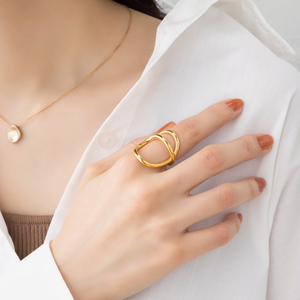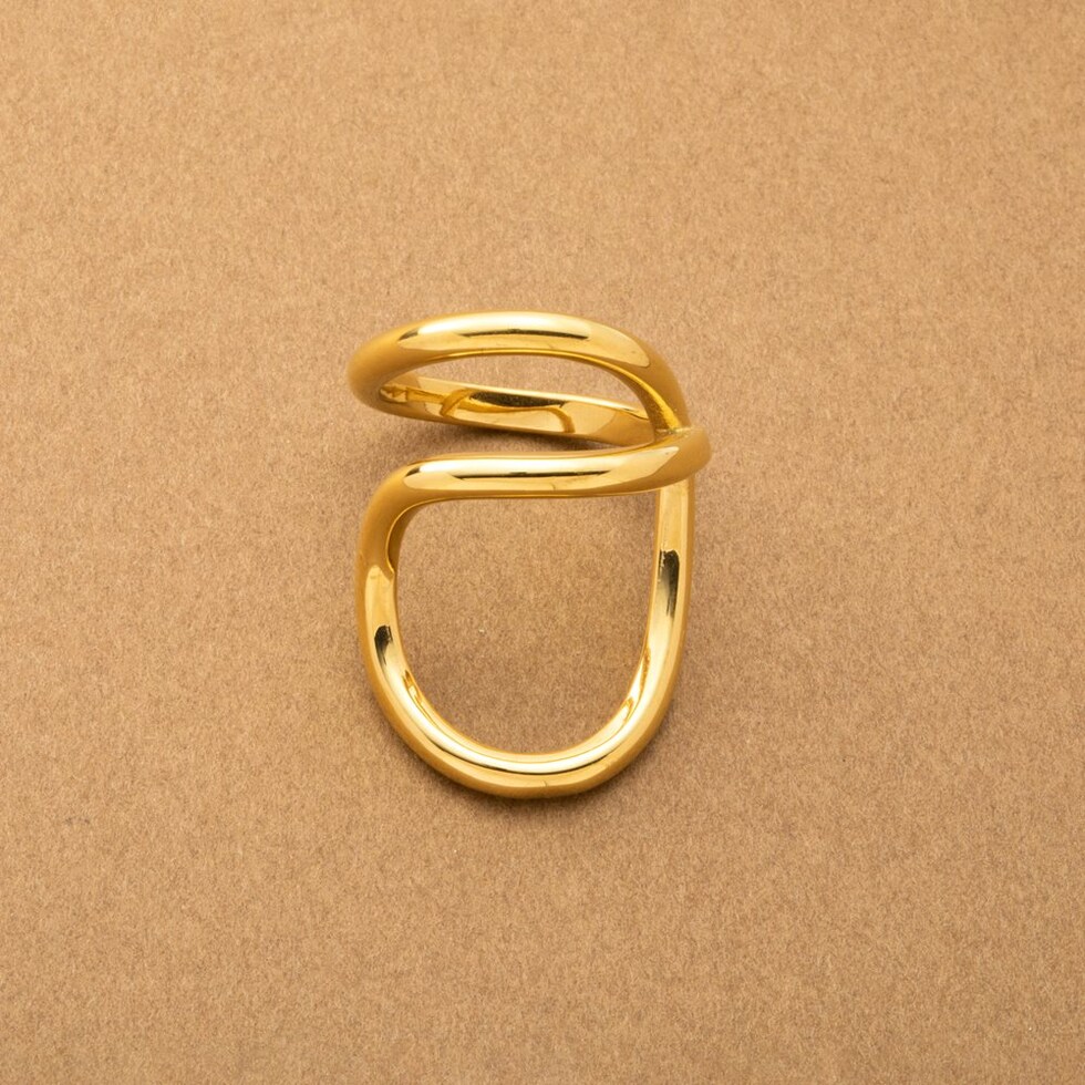 ニュアンスあるフォルムが目を惹く、くるりんぱデザインのリング。ごつめながらも緩やかな曲線を描くラインが女性らしい印象に◎錆びにくいステンレス製でデイリーに活躍しそう。