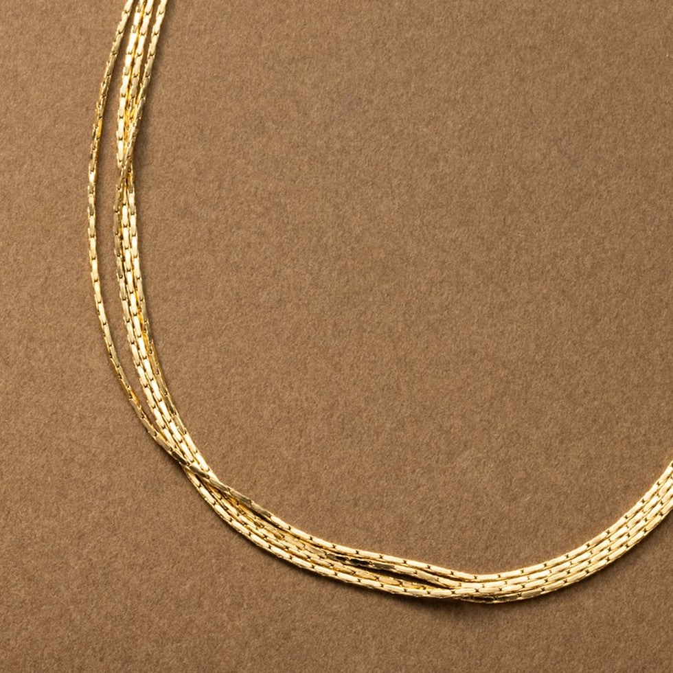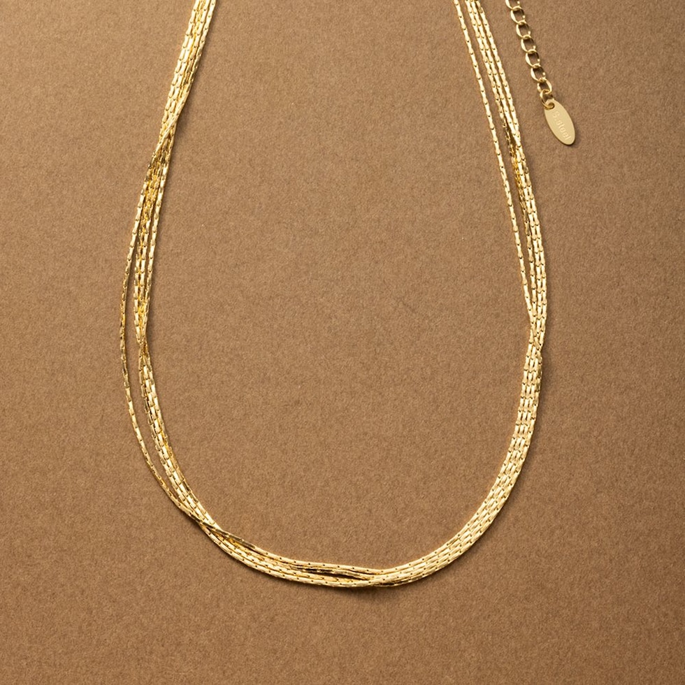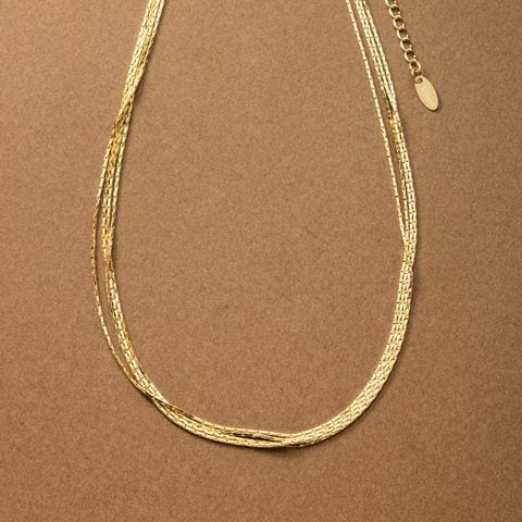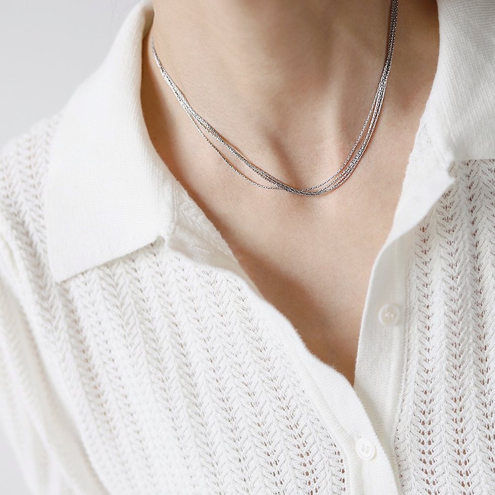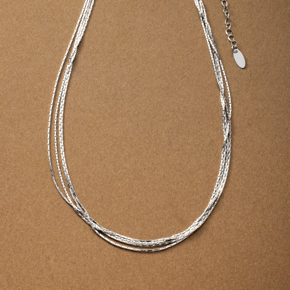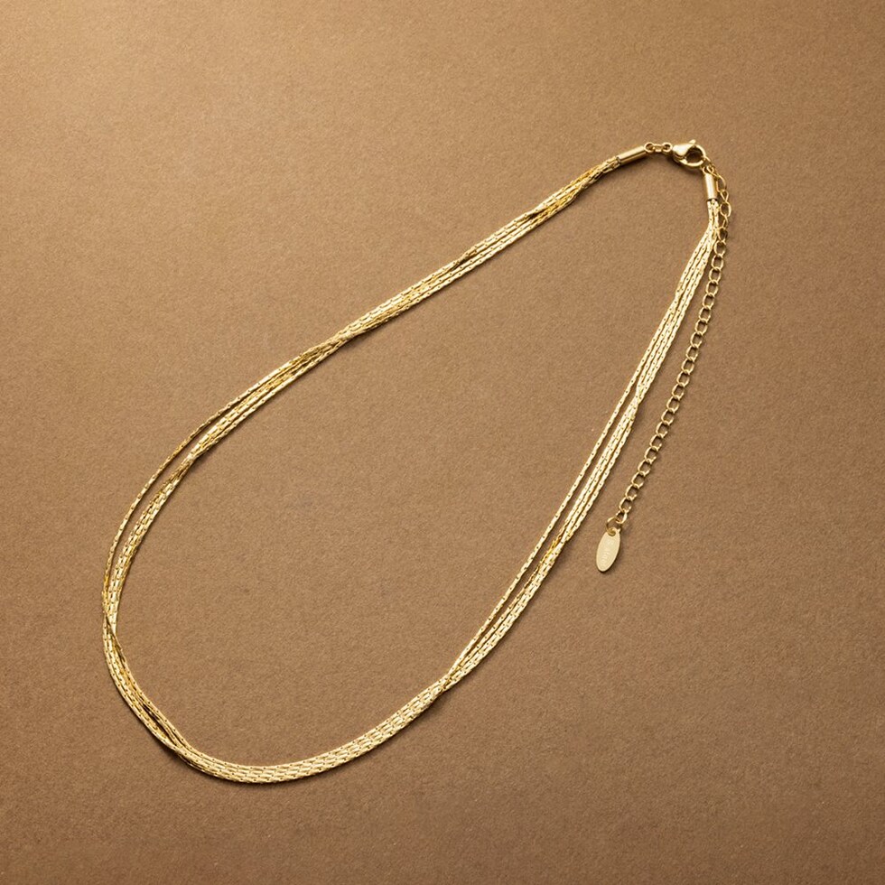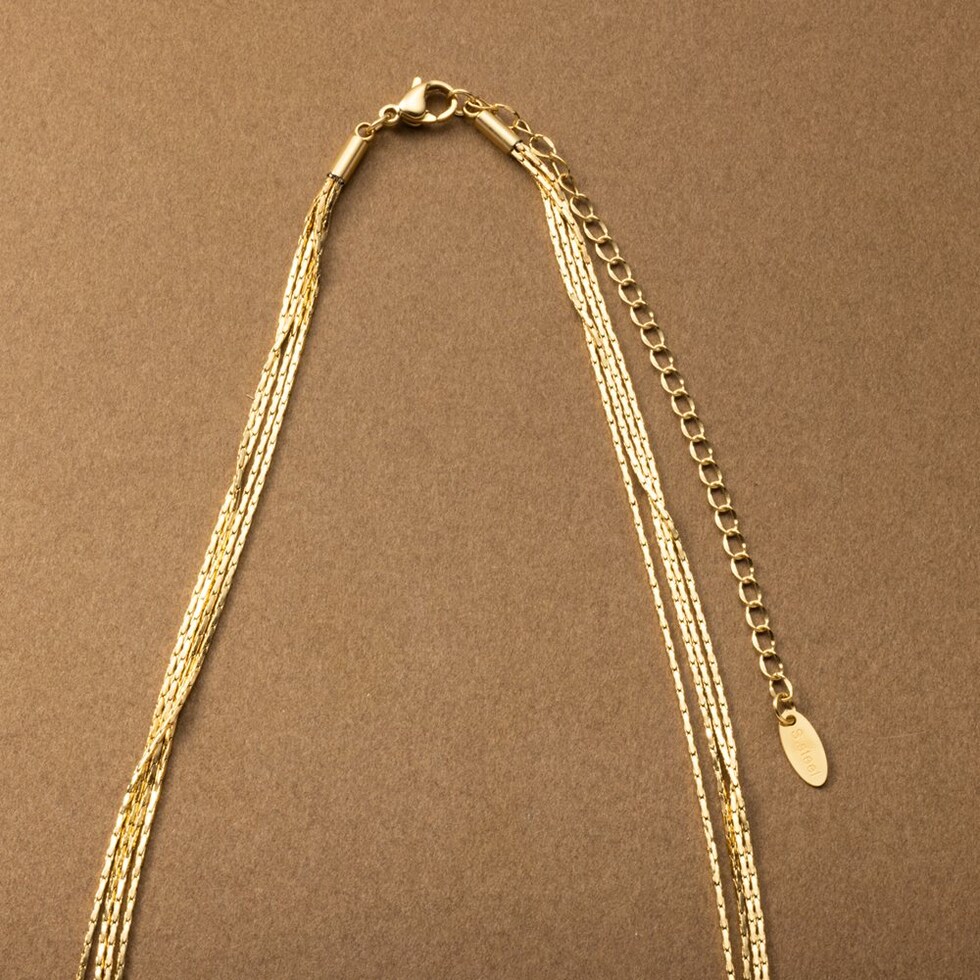スエッジチェーンを贅沢に使った多重ネックレス。上品に煌めく華奢チェーンが、洗練された雰囲気に仕上げてくれます。錆びにくく傷に強いステンレス製だから毎日身に付けたくなる、デイリーコーデのクラスアップアイテムしてオススメの一品です。