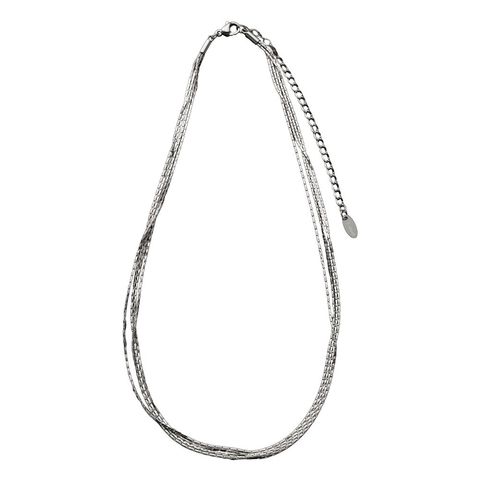 スエッジチェーンを贅沢に使った多重ネックレス。上品に煌めく華奢チェーンが、洗練された雰囲気に仕上げてくれます。錆びにくく傷に強いステンレス製だから毎日身に付けたくなる、デイリーコーデのクラスアップアイテムしてオススメの一品です。