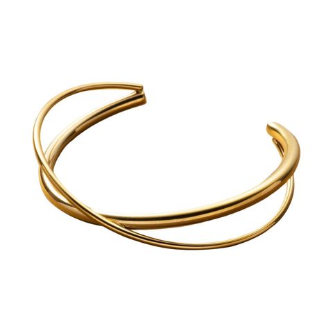 幅の異なるメタルラインがクロスしたバングル。高級感漂うデザインが手元にこなれ感をプラスし、洗練された印象に仕上げてくれます。錆びにくいステンレス製で着脱しやすくデイリーに活躍しそう。