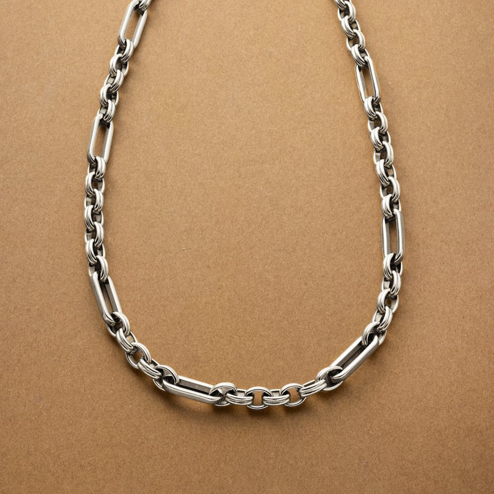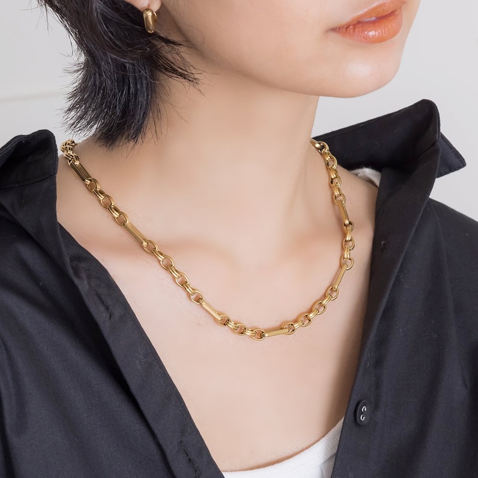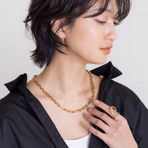 主役級の存在感を放つオーバルチェーンのネックレス。ほど良く重みがあり高見えするチェーンが胸元に大人っぽい品格をプラス。キレイめからカジュアルまで幅広いスタイルにマッチするアイテムです。錆びにくく傷に強いステンレス製でデイリーに活躍間違いナシ◎