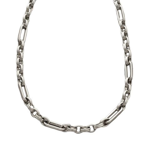 主役級の存在感を放つオーバルチェーンのネックレス。ほど良く重みがあり高見えするチェーンが胸元に大人っぽい品格をプラス。キレイめからカジュアルまで幅広いスタイルにマッチするアイテムです。錆びにくく傷に強いステンレス製でデイリーに活躍間違いナシ◎