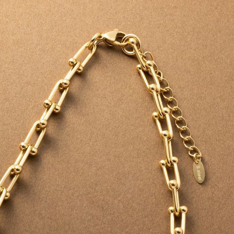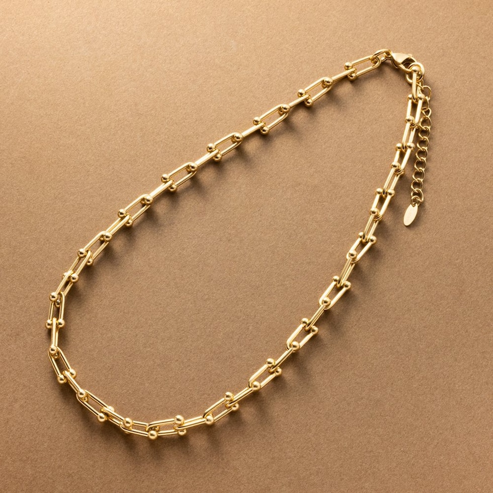 ネックレス ステンレス 金属アレルギー サージカルステンレス レディース つけっぱなし 2サイズ ショート リンキングチェーン オーバル スフィア 7mm幅 5mm幅 cream dot ゆうパケット [ゴールド_Lサイズ]