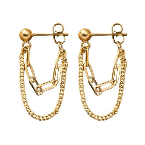 ピアス ステンレス 金属アレルギー サージカルステンレス レディース つけっぱなし 揺れる バックキャッチ オーバルチェーン 2連 cream dot ゆうパケット [ゴールド_ピアス]