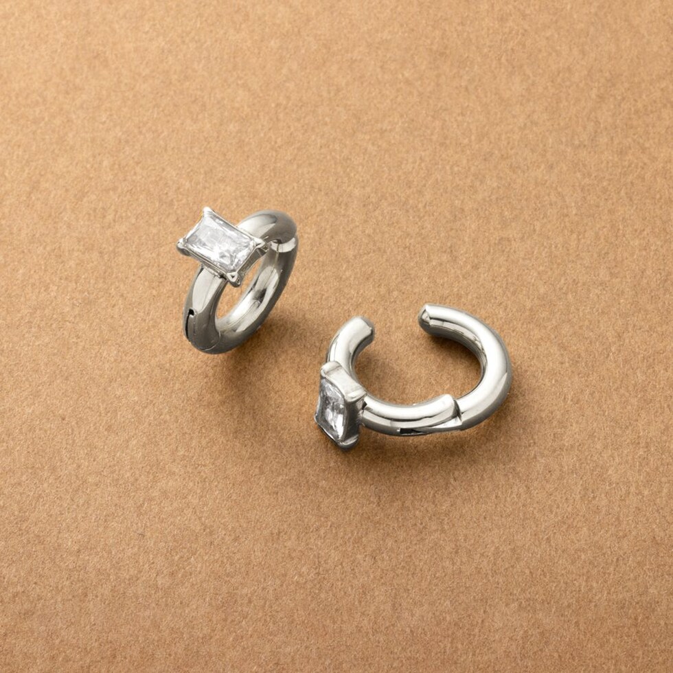 シャープに煌くビジューがちょっぴりエレガントなステンレス製カフイヤリング。お手持ちのピアスやイヤリング、イヤーカフとコーディネートしてもお洒落に仕上がる優秀アイテムです。挟むだけで簡単に着用できて、イヤカフとしても使える2way仕様も嬉しい◎錆びにくいステンレス製でデイリーに活躍しそう。