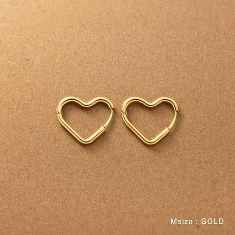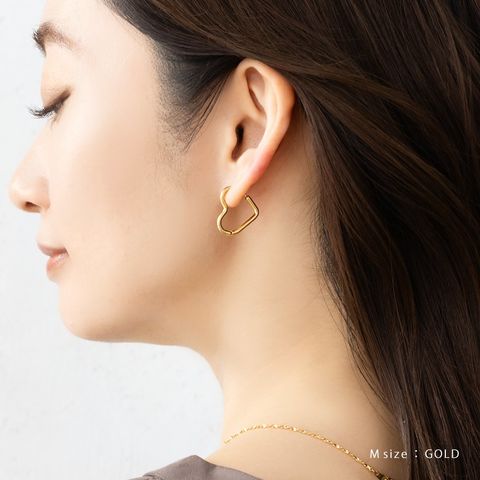 どの角度から見てもキレイに見えるハートのキャッチレスピアス。甘すぎない絶妙な可愛さをプラスします◎大人っぽく身につけられるMサイズと、アクセントにぴったりなLサイズ展開。錆びにくく傷に強いステンレス製でデイリーに活躍間違いナシのひと品です。
