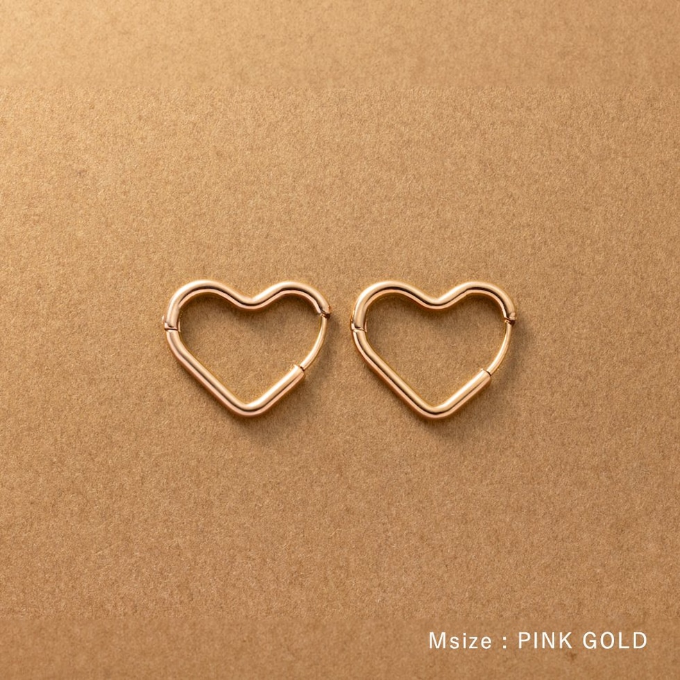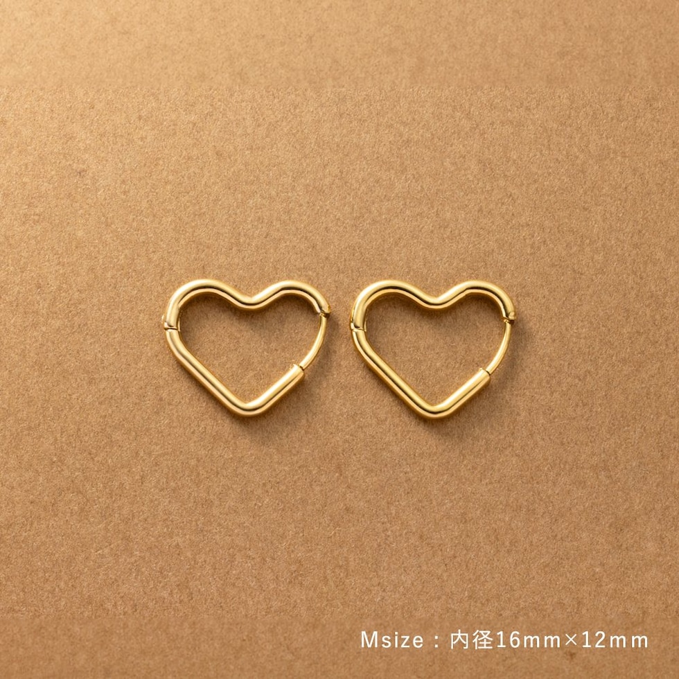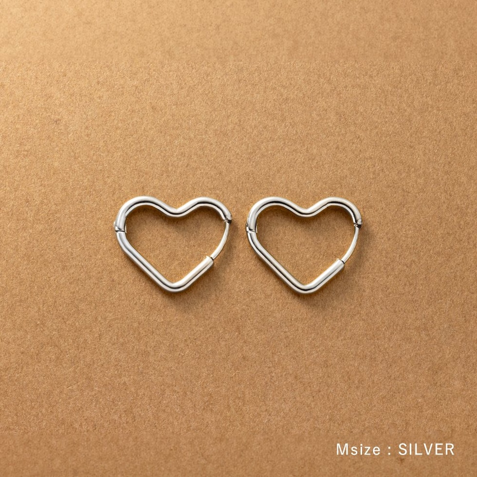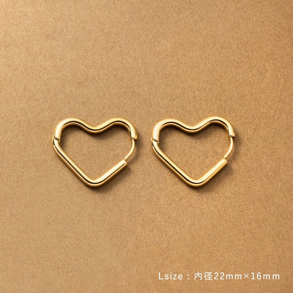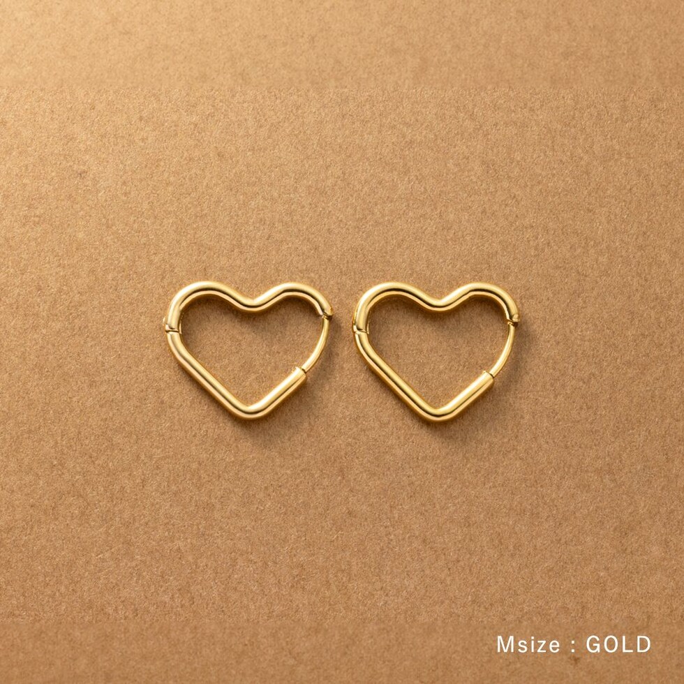 どの角度から見てもキレイに見えるハートのキャッチレスピアス。甘すぎない絶妙な可愛さをプラスします◎大人っぽく身につけられるMサイズと、アクセントにぴったりなLサイズ展開。錆びにくく傷に強いステンレス製でデイリーに活躍間違いナシのひと品です。