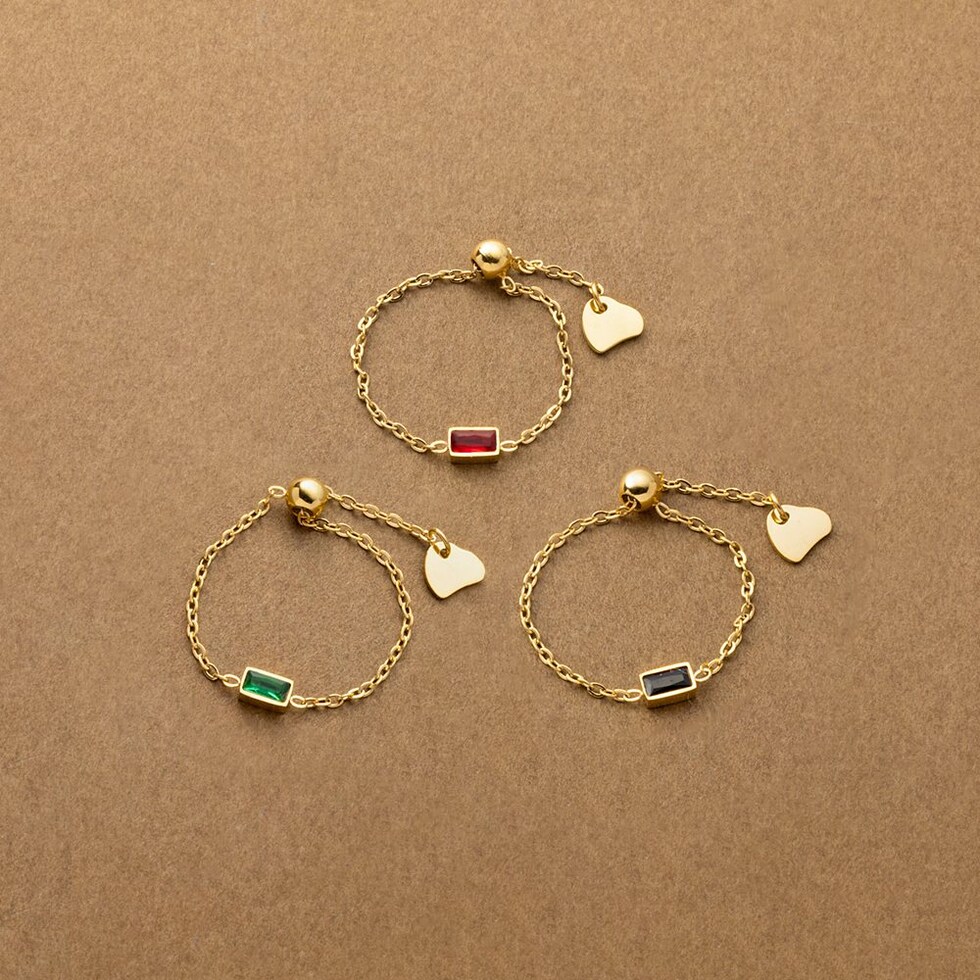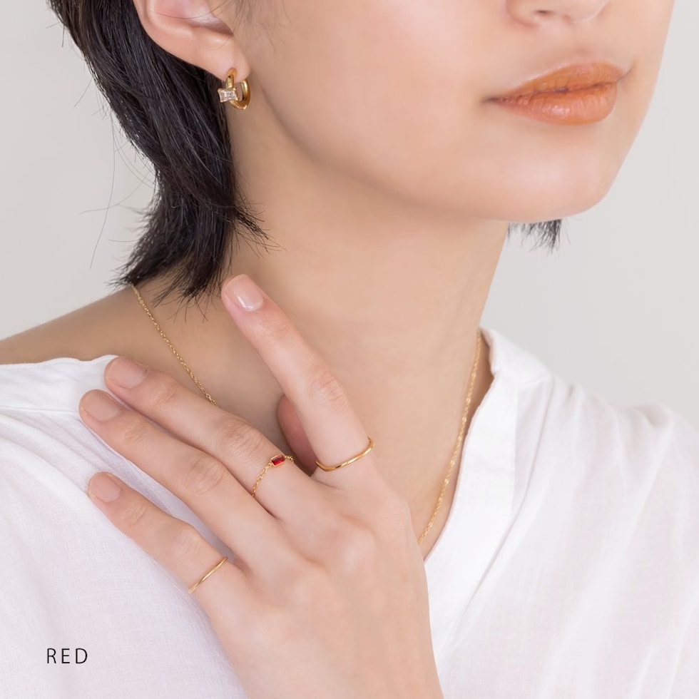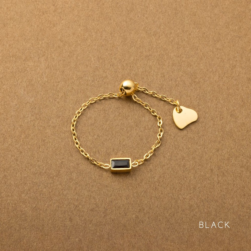 バケットカット×カラービジューのチェーンリング。華奢チェーンと小粒ワントップのデザインが、指先を美しくこなれた雰囲気に仕上げます。サイズ調整もできるアジャスター付きで、錆びにくいステンレス製だからデイリーに活躍しそう。