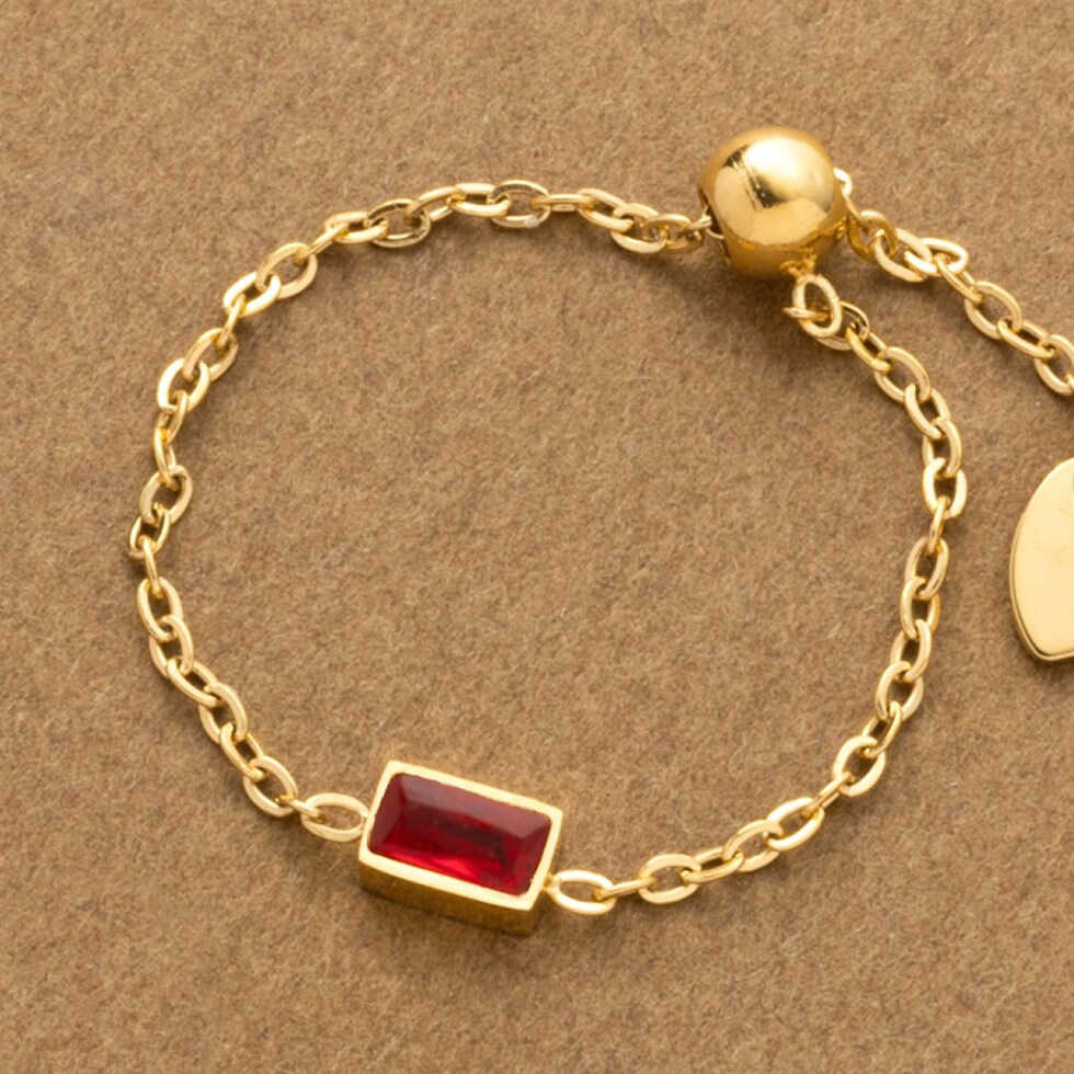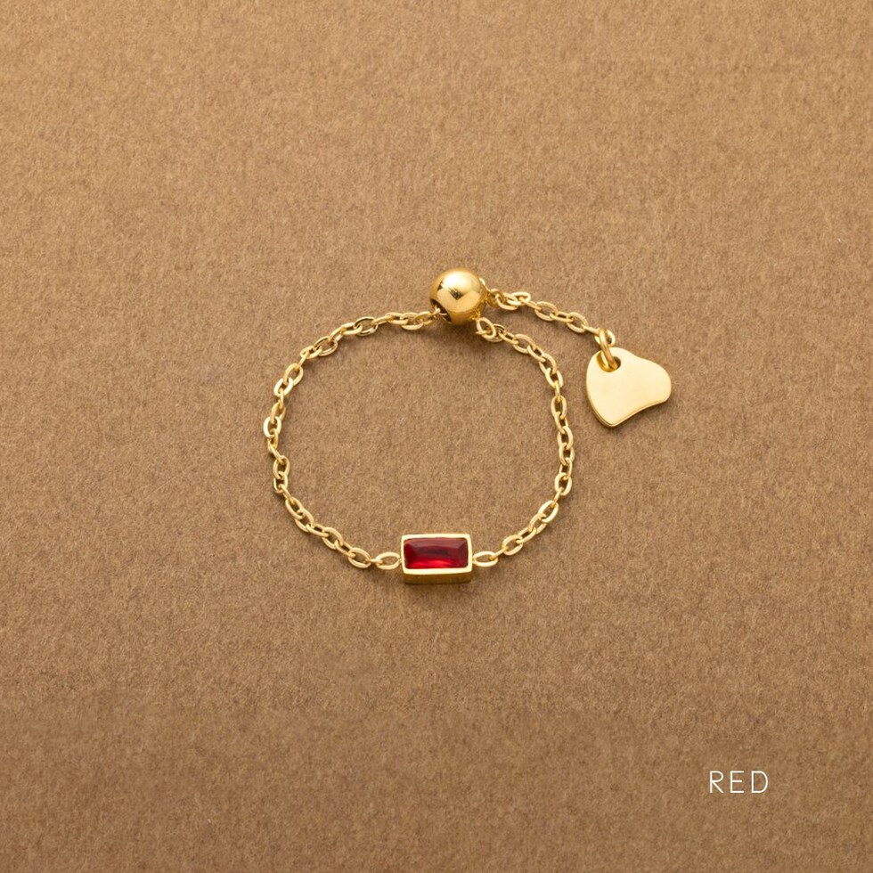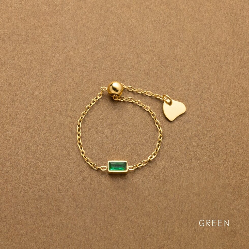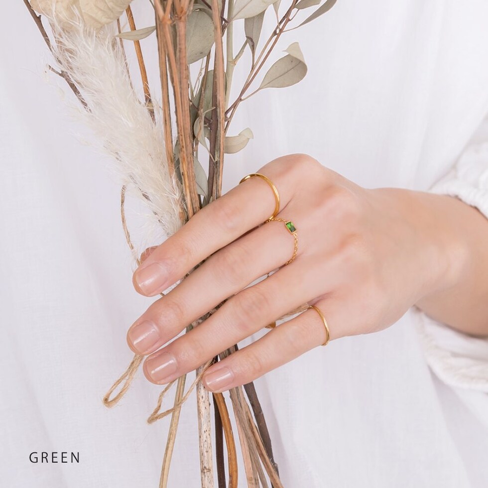 リング 指輪 ステンレス 金属アレルギー サージカルステンレス レディース つけっぱなし フリーサイズ フリーアジャスター スクエア チェーン バケットカットビジュー グリーン cream dot ゆうパケット [レッド_フリーサイズ]