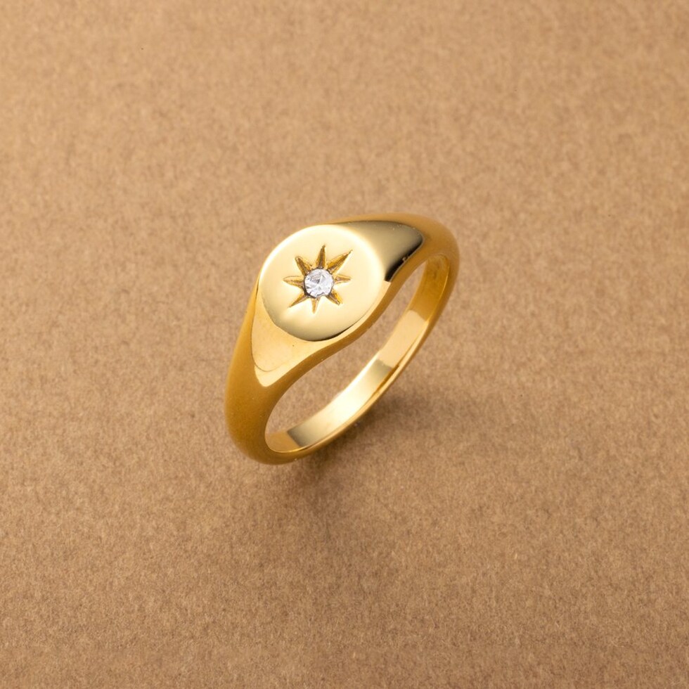 リング 指輪 ステンレス 金属アレルギー サージカルステンレス レディース つけっぱなし 星 太陽 ワイド ビジュー cream dot ゆうパケット [ゴールド_17号]