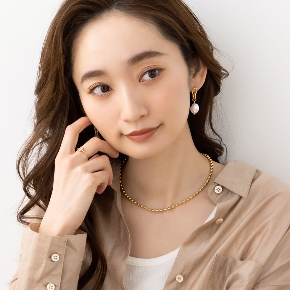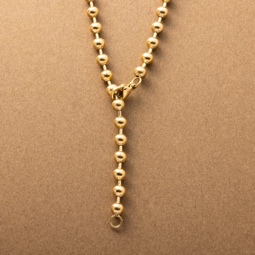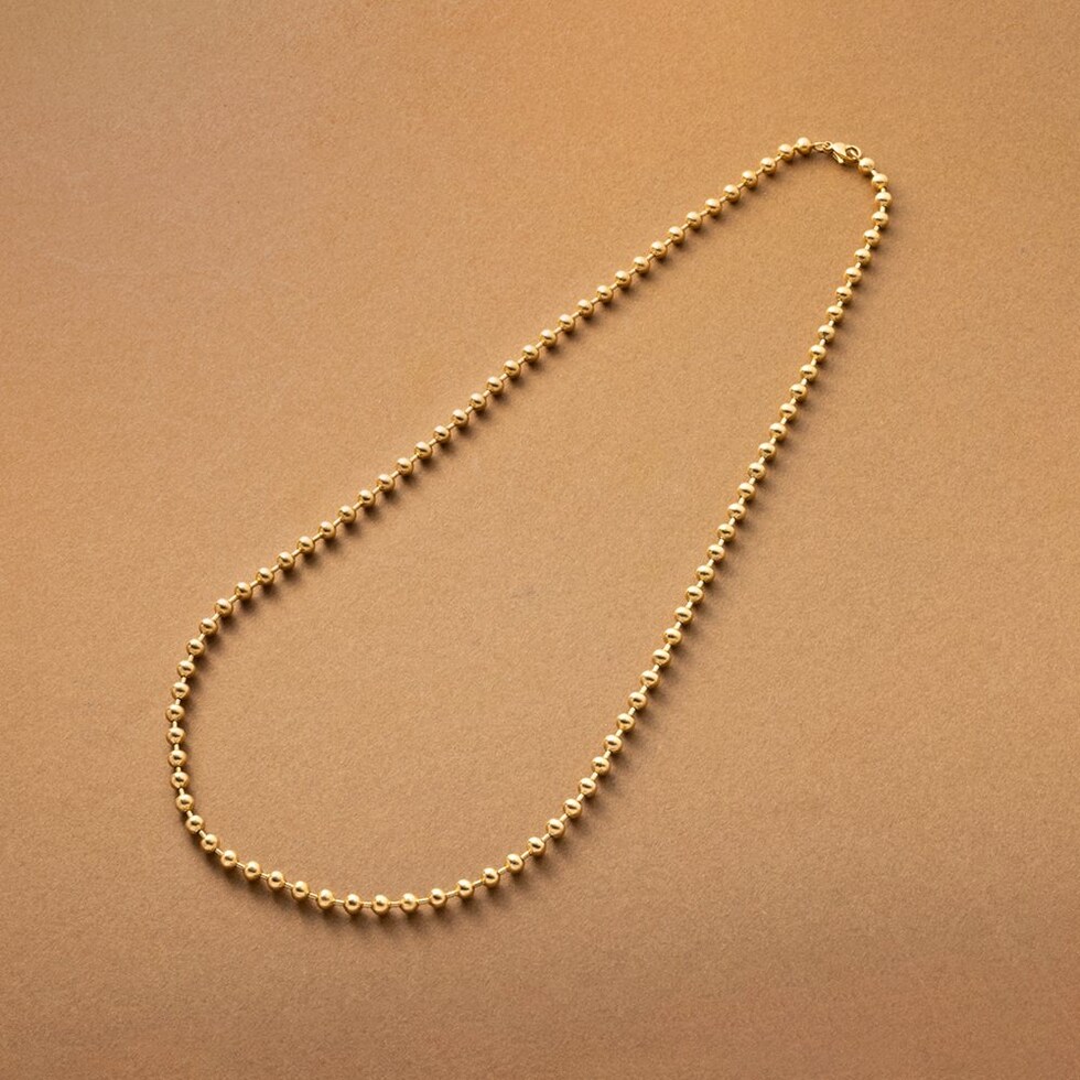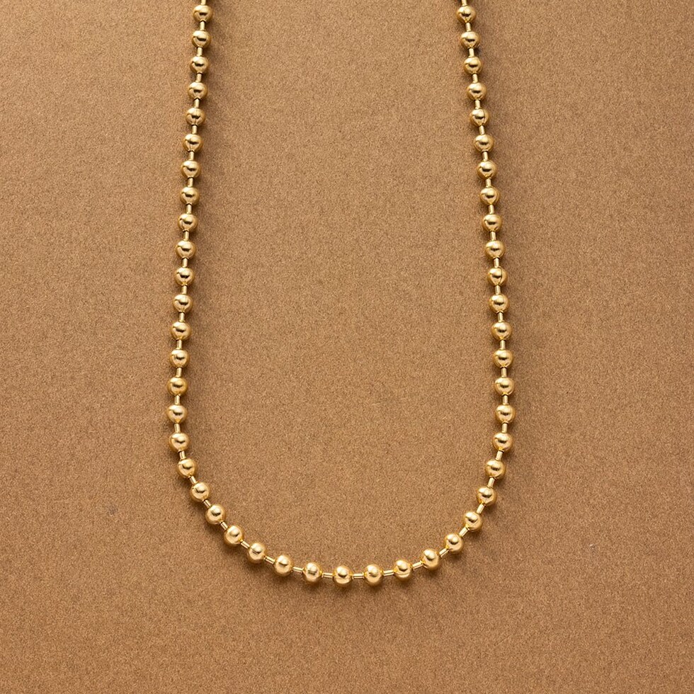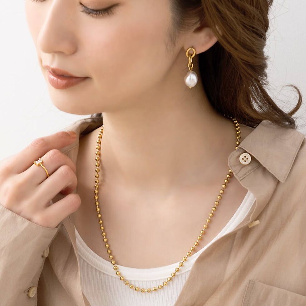 こなれた印象をつくる、ボールチェーンネックレス。アジャスターレスのデザインですが、ボールの好きな位置で丈感を調整出来る。シンプルながらも、洗練されたモードな雰囲気に仕上げてくれます。