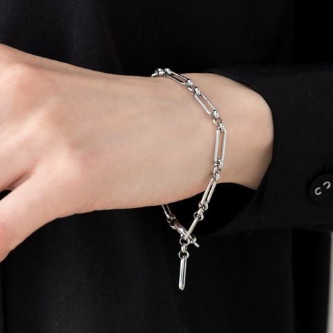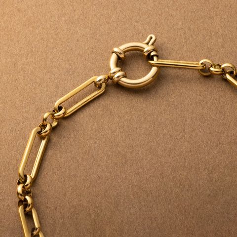 トレンドのオーバルチェーンが存在感を放つブレスレット。引き輪の位置を変えることで違った表情が楽しめるアジャスターレスなデザイン。錆びにくく傷に強いステンレス製でデイリーに活躍するひと品です。