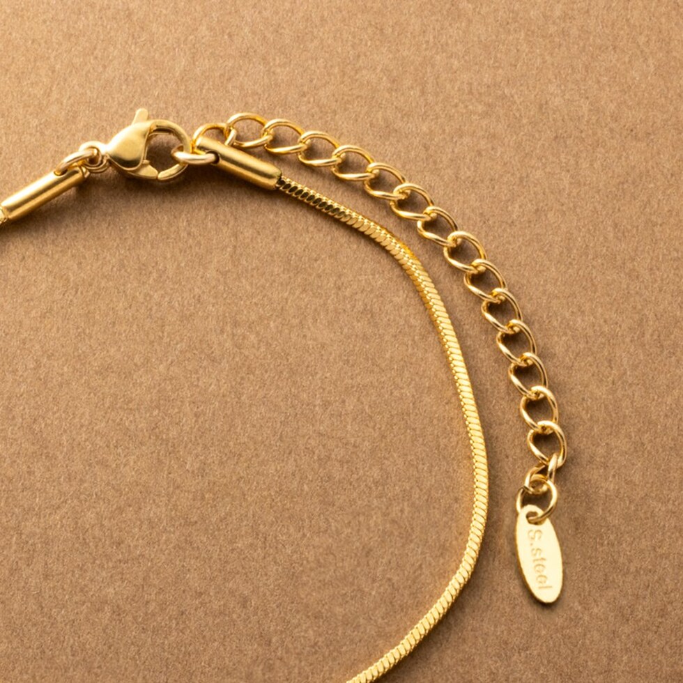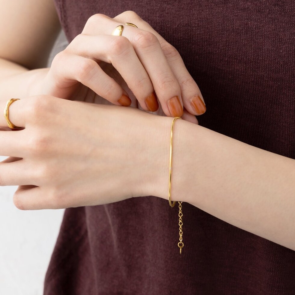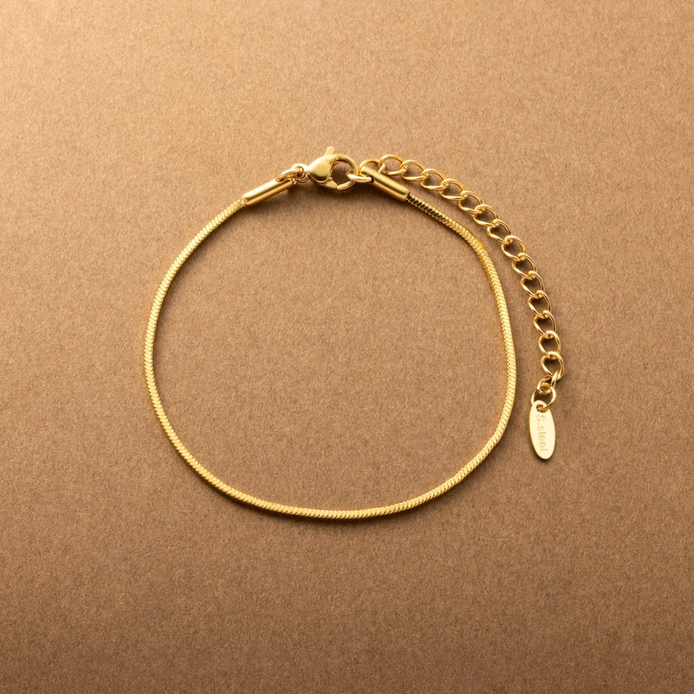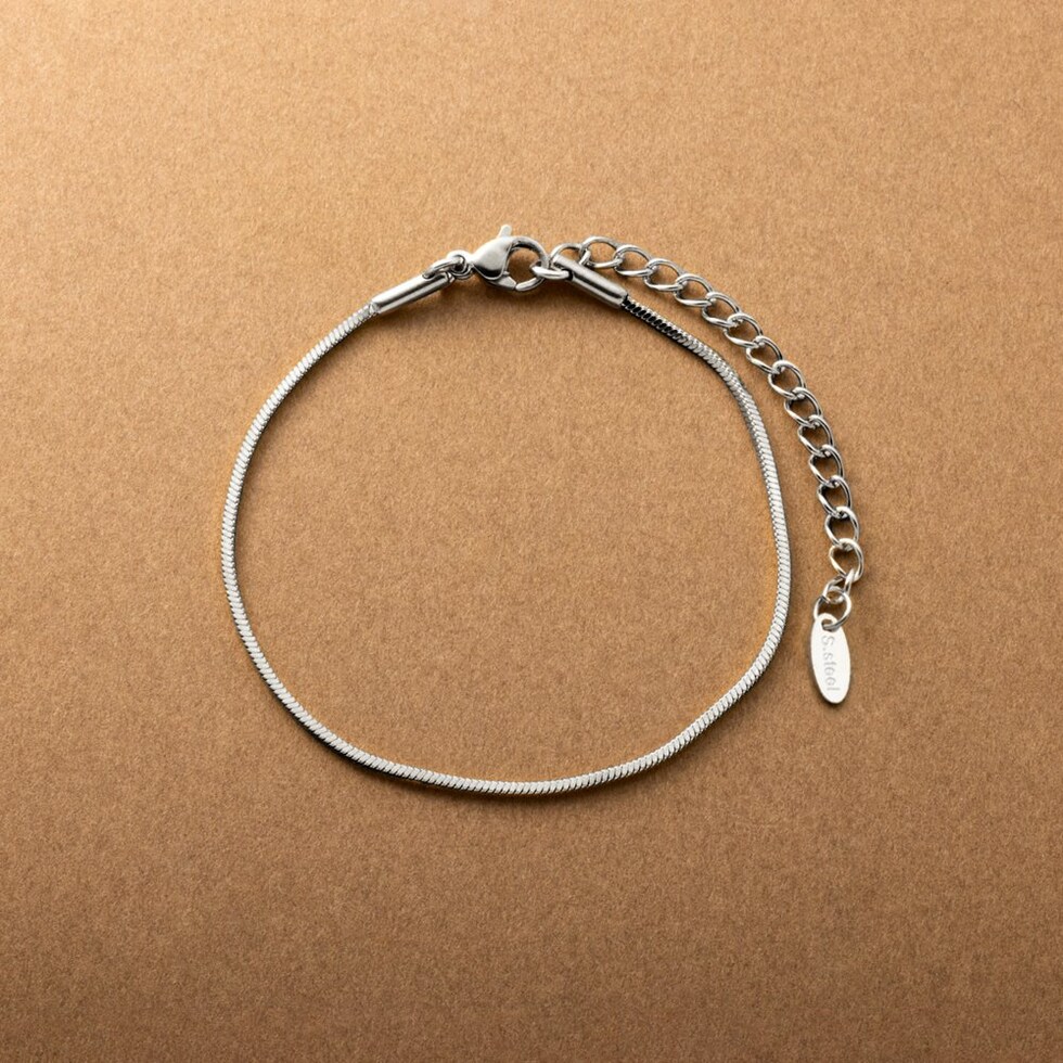 シングルタイプのスネークチェーンブレスレット。スマートな印象のスネークチェーンは、レイヤードにも最適なアイテムです。シンプルなデザインと錆びにくいステンレス製で、デイリーに活躍するひと品。