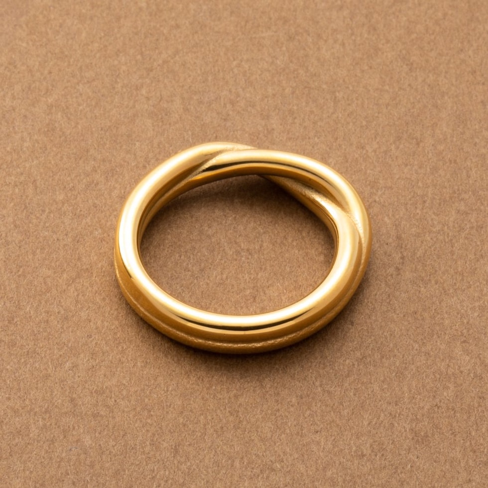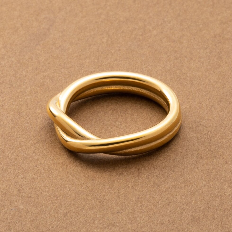 手元にモダンな存在感をプラスするツイストメタルのリング。シンプルでこなれ感のあるデザインが、洗練された手元を演出してくます。程よい厚さと錆びにくいステンレス製でデイリーに活躍しそう。